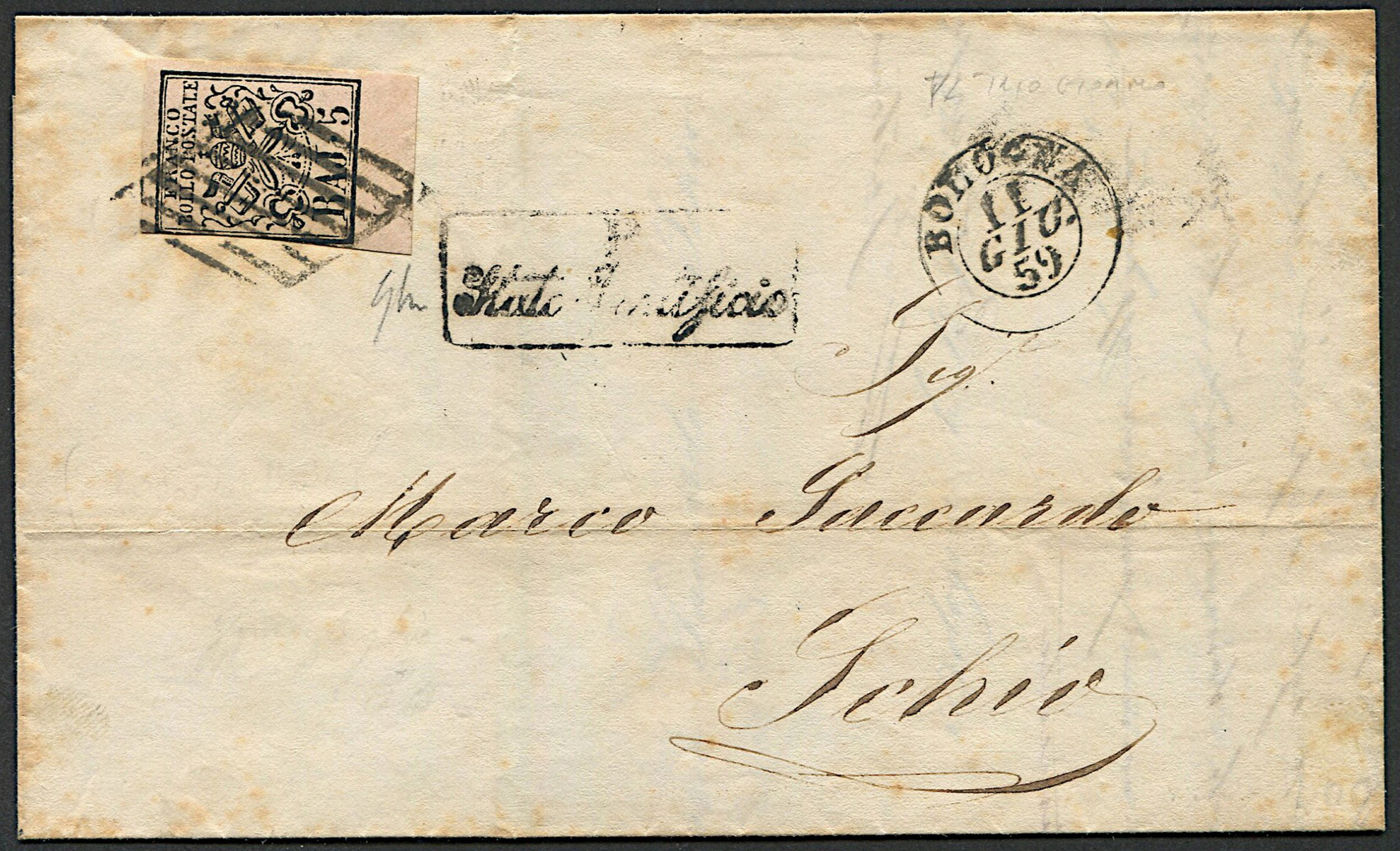 1859, Pontificio, lettera da Bologna per Schio dell’11 giugno 1859