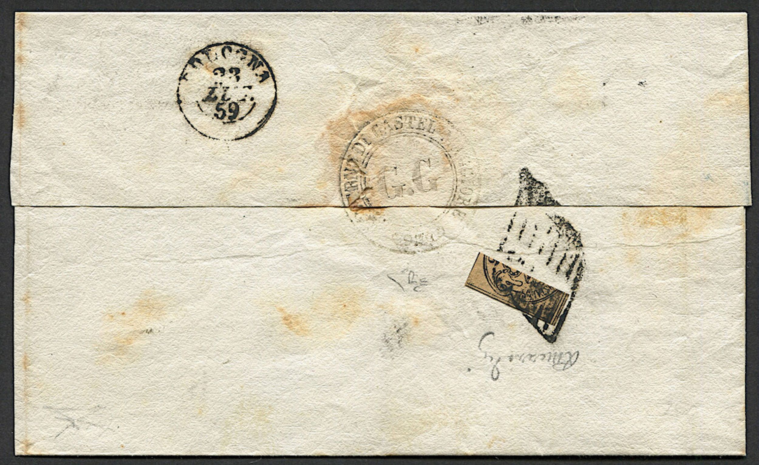 1859, Pontificio, lettera da Castelmaggiore per Argile del 23 luglio 1859
