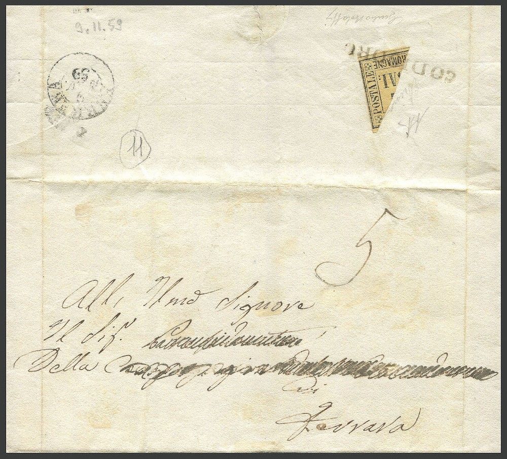 1859, Romagna, Governo Provvisorio, lettera da Codigoro per Ferrara del 9 novembre [..]