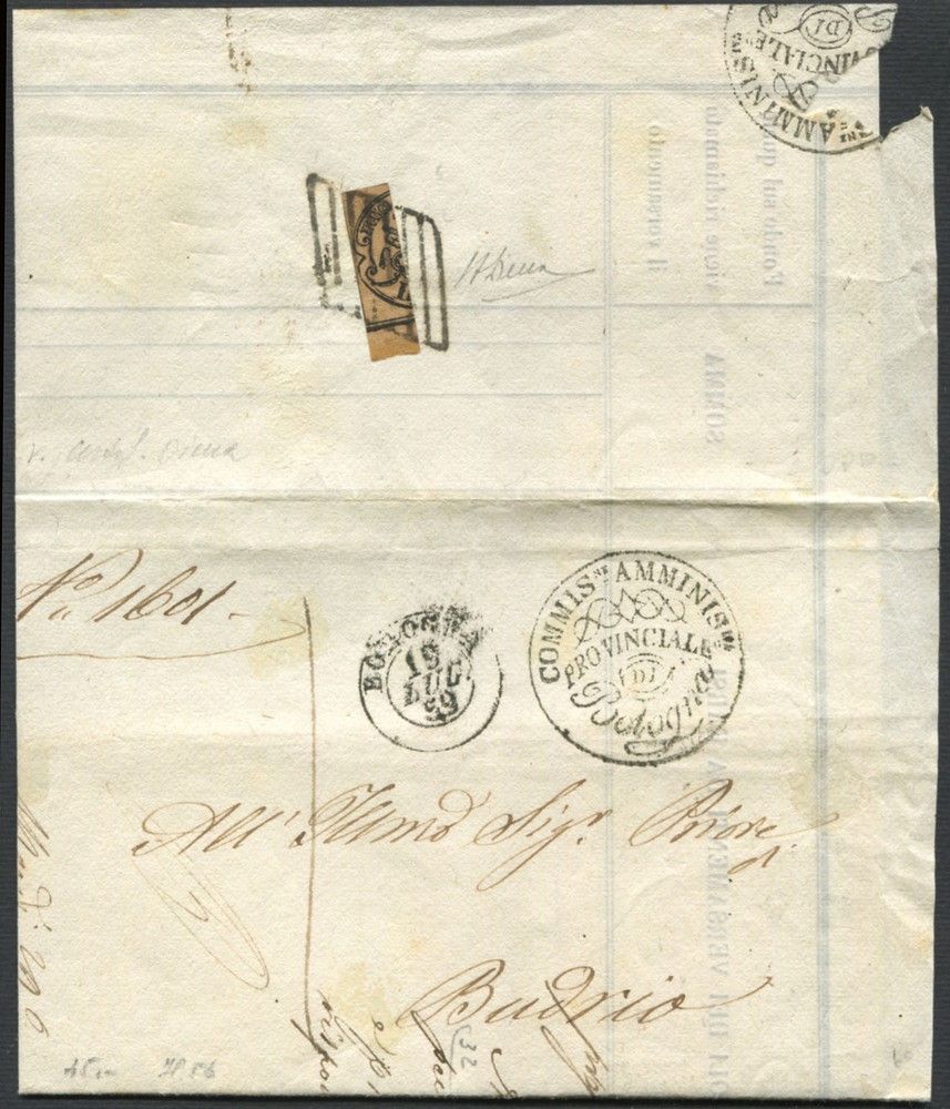 1859, Romagna, Governo Provvisorio, lettera da Bologna per Budrio del 19 luglio. [..]