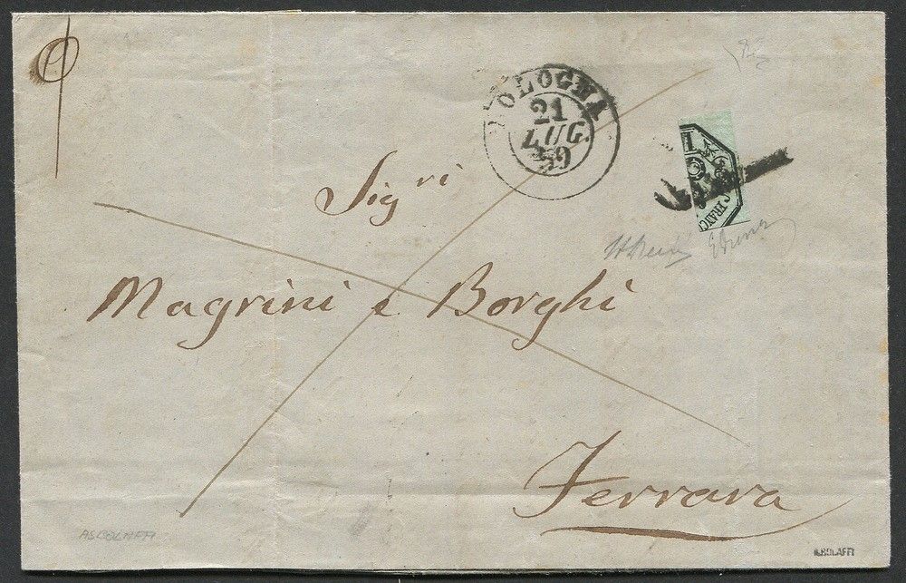 1859, Romagne, Governo Provvisorio, lettera da Bologna per Ferrara del 21 luglio [..]