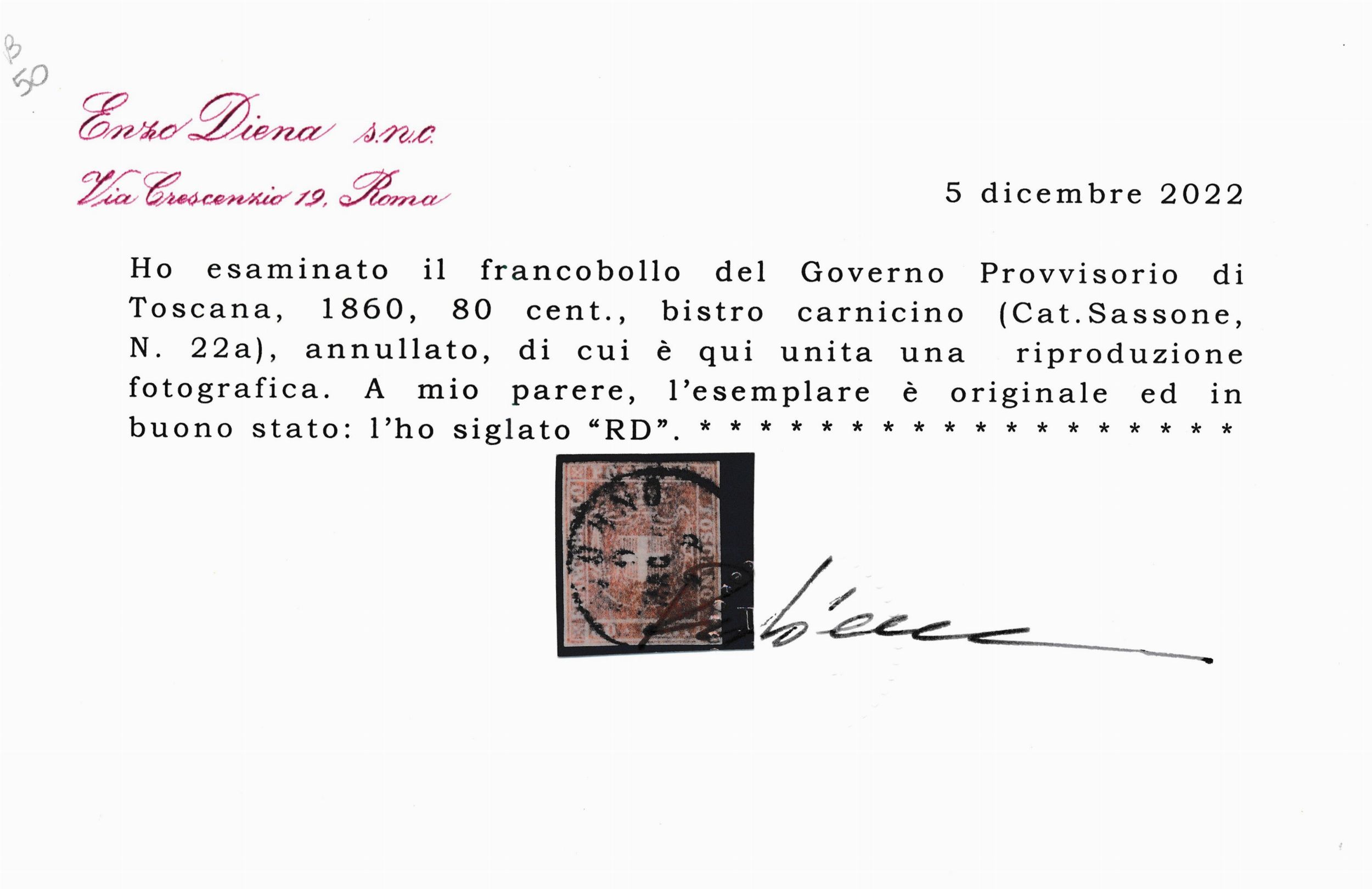 1860 Toscana Governo Provvisorio 80 cent. bistro carnicino (Sass. 22a) ann [..]
