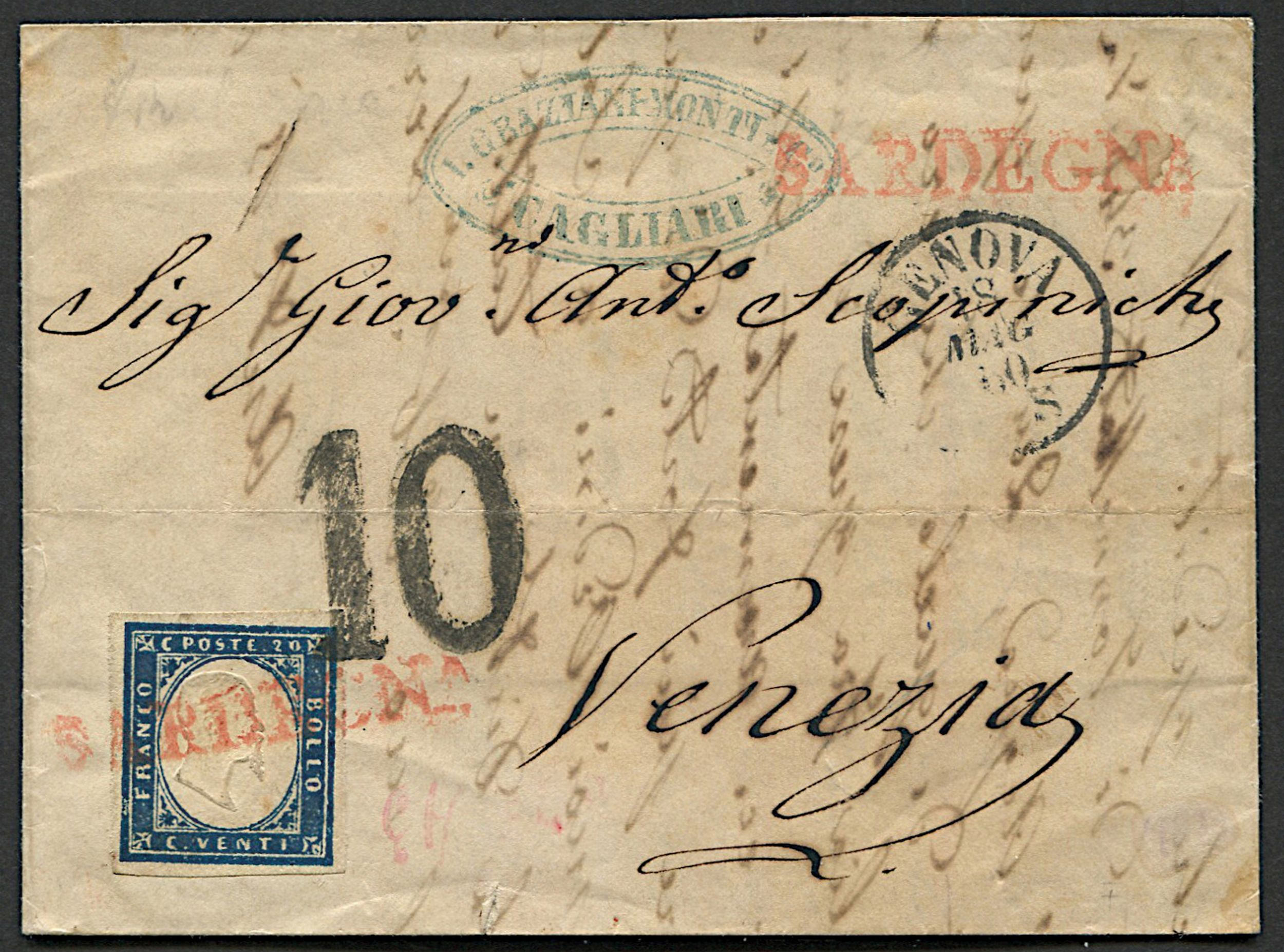 1860, Sardegna, lettera da Cagliari per Venezia del 12 maggio 1860
