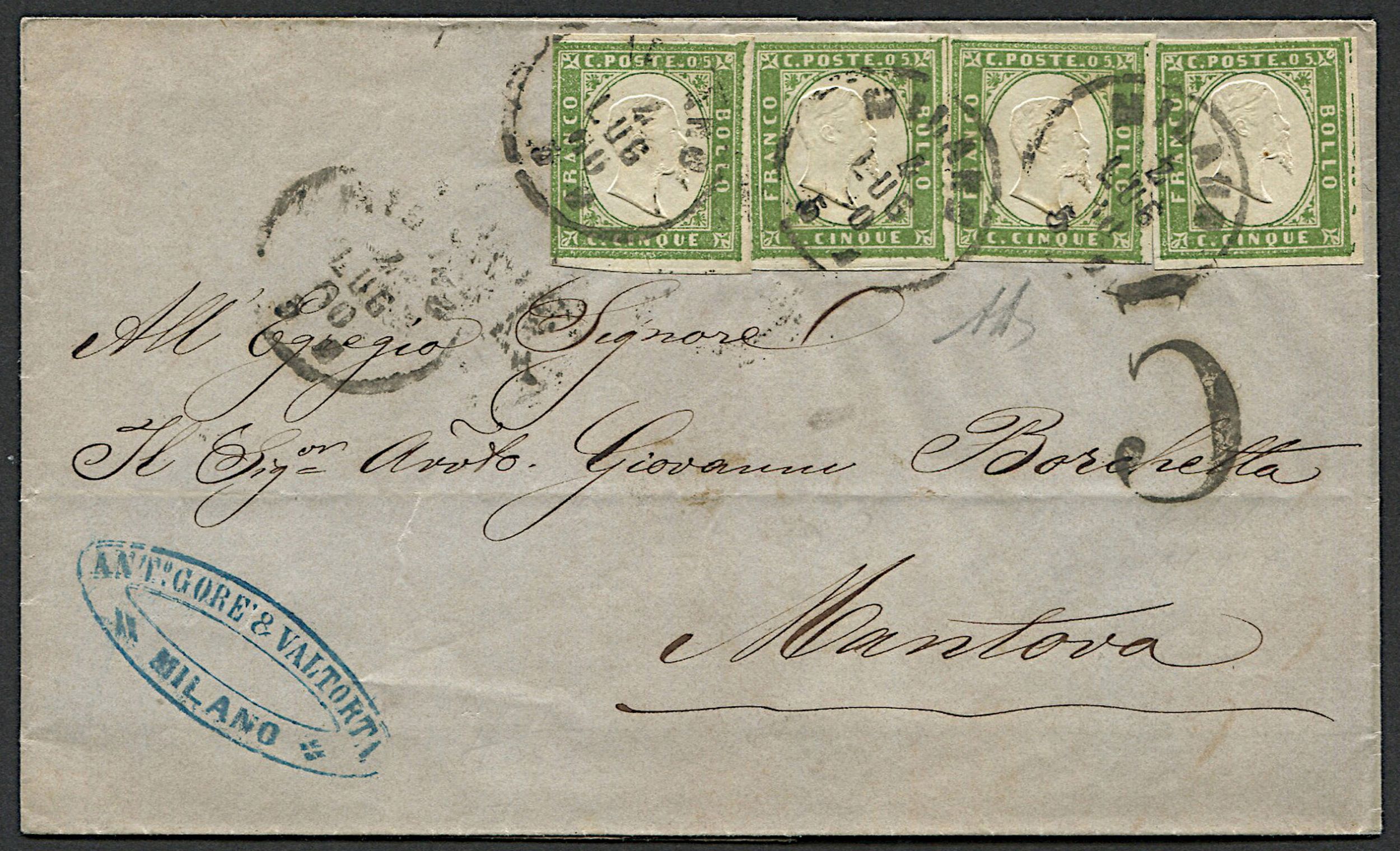 1860, Sardegna, lettera da Milano per Mantova del 4 luglio 1860