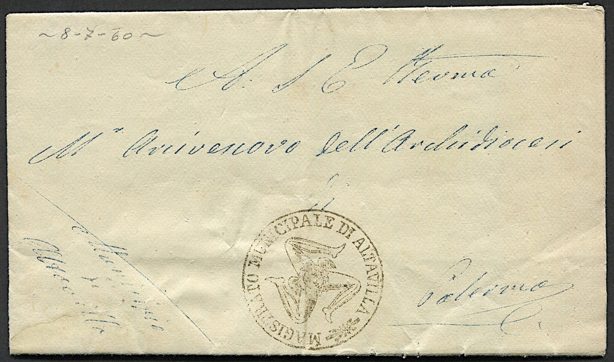 1860, Sicilia, lettera in franchigia da Altavilla a Palermo dell’8 luglio 1860