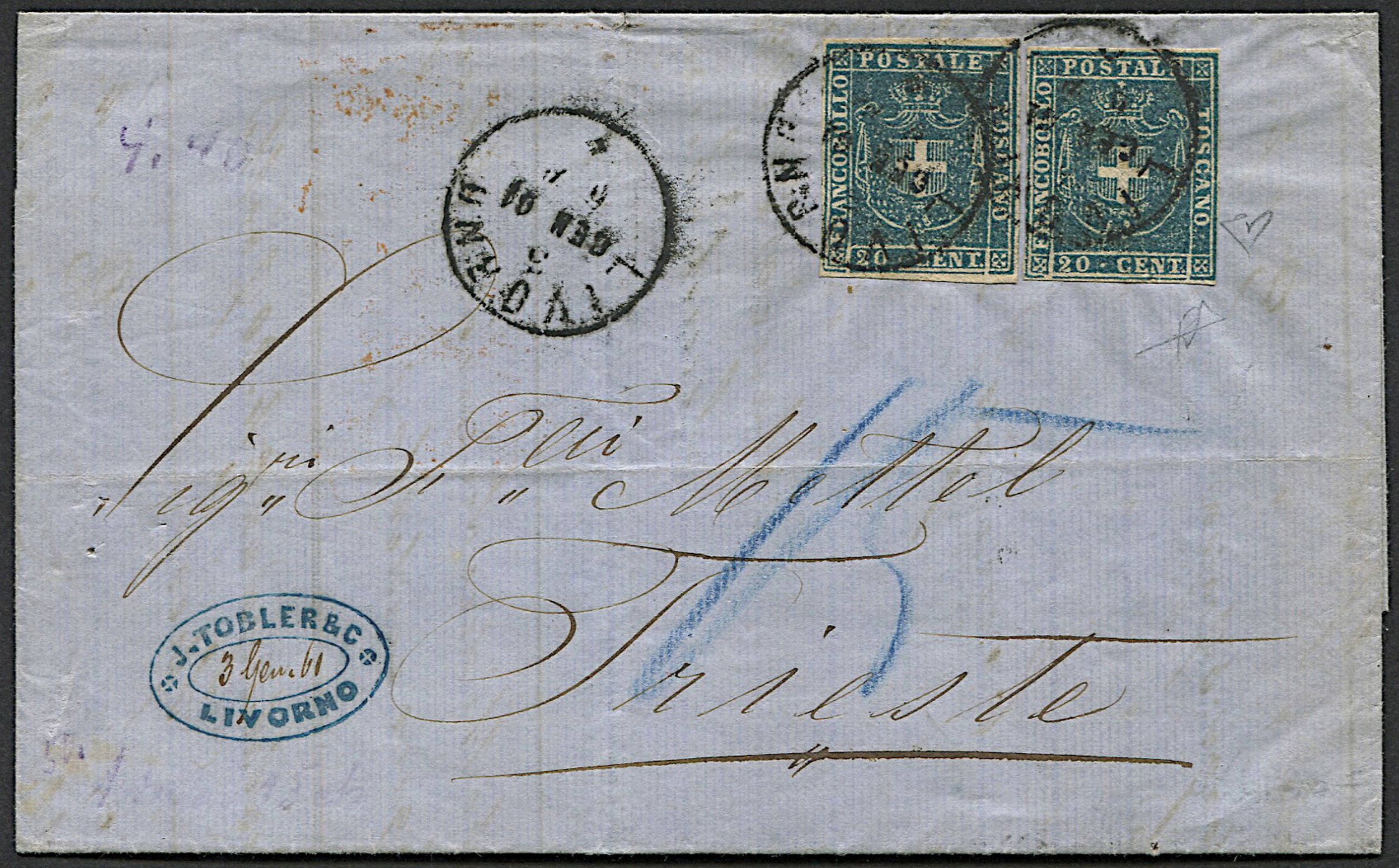 1861, Toscana, lettera scritta a Catania il 28 dicembre 1860 per Trieste