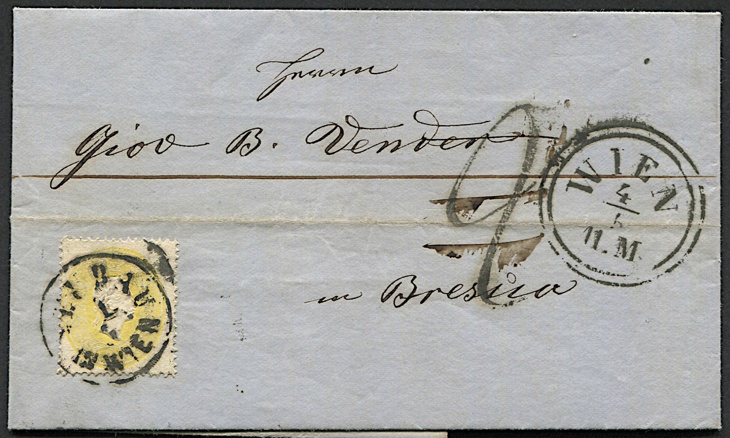 1862 - Austria - Lettera da Vienna per Brescia del 4 maggio Affrancata con 2 kr. [..]