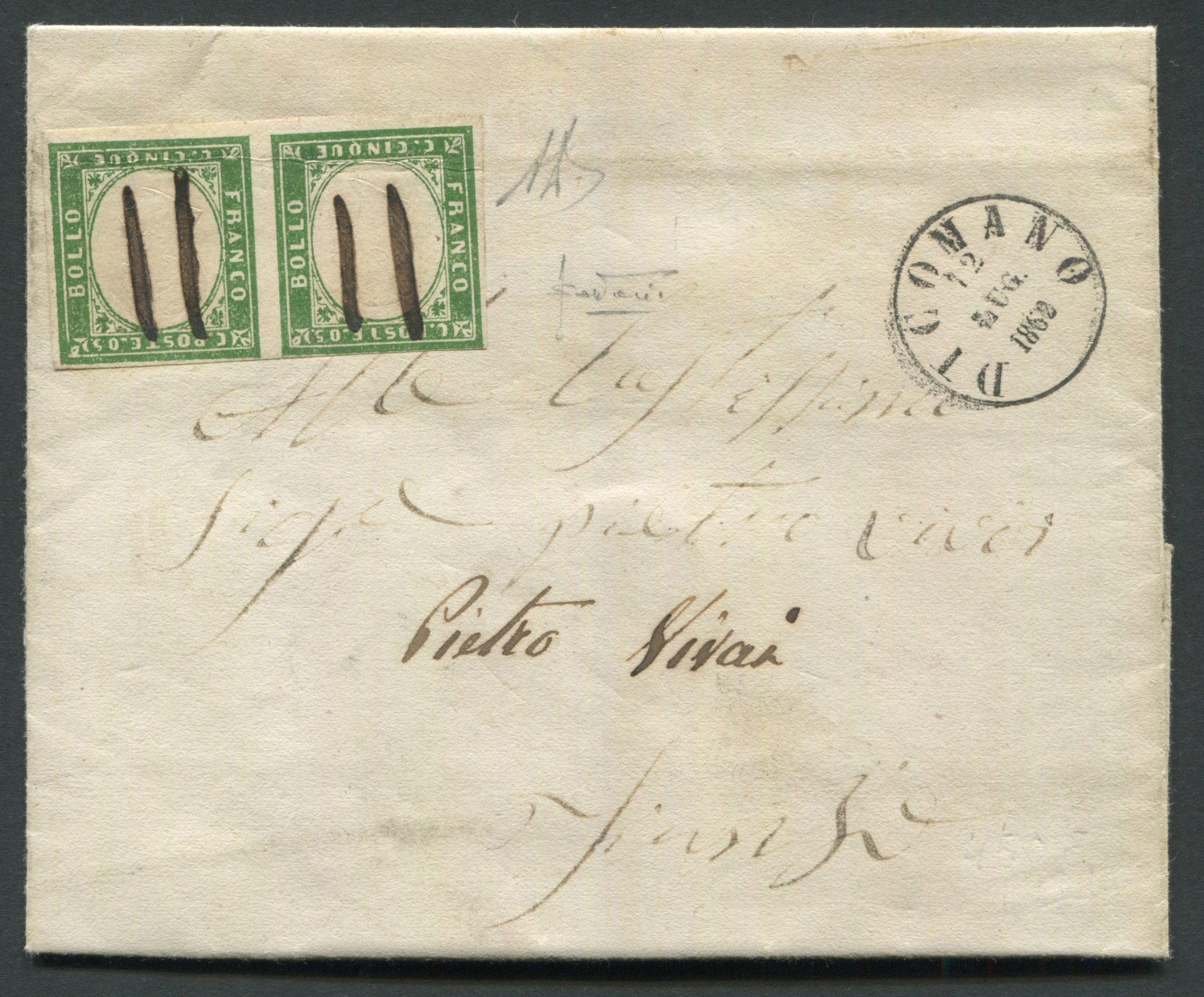 1862 - Regno di Sardegna - IV emissione - 5c. verde scuro coppia orizz. (Sass. 13D) [..]