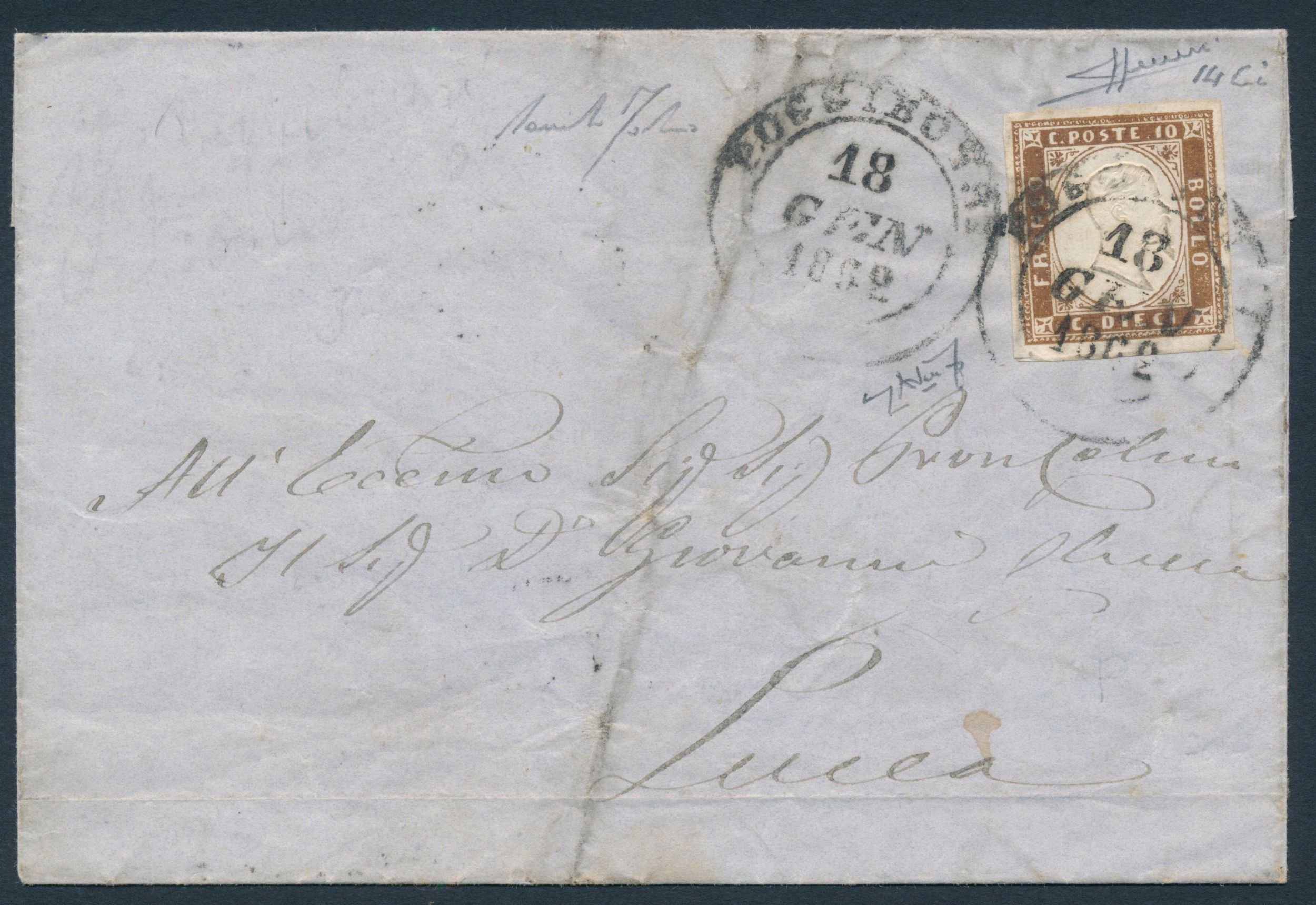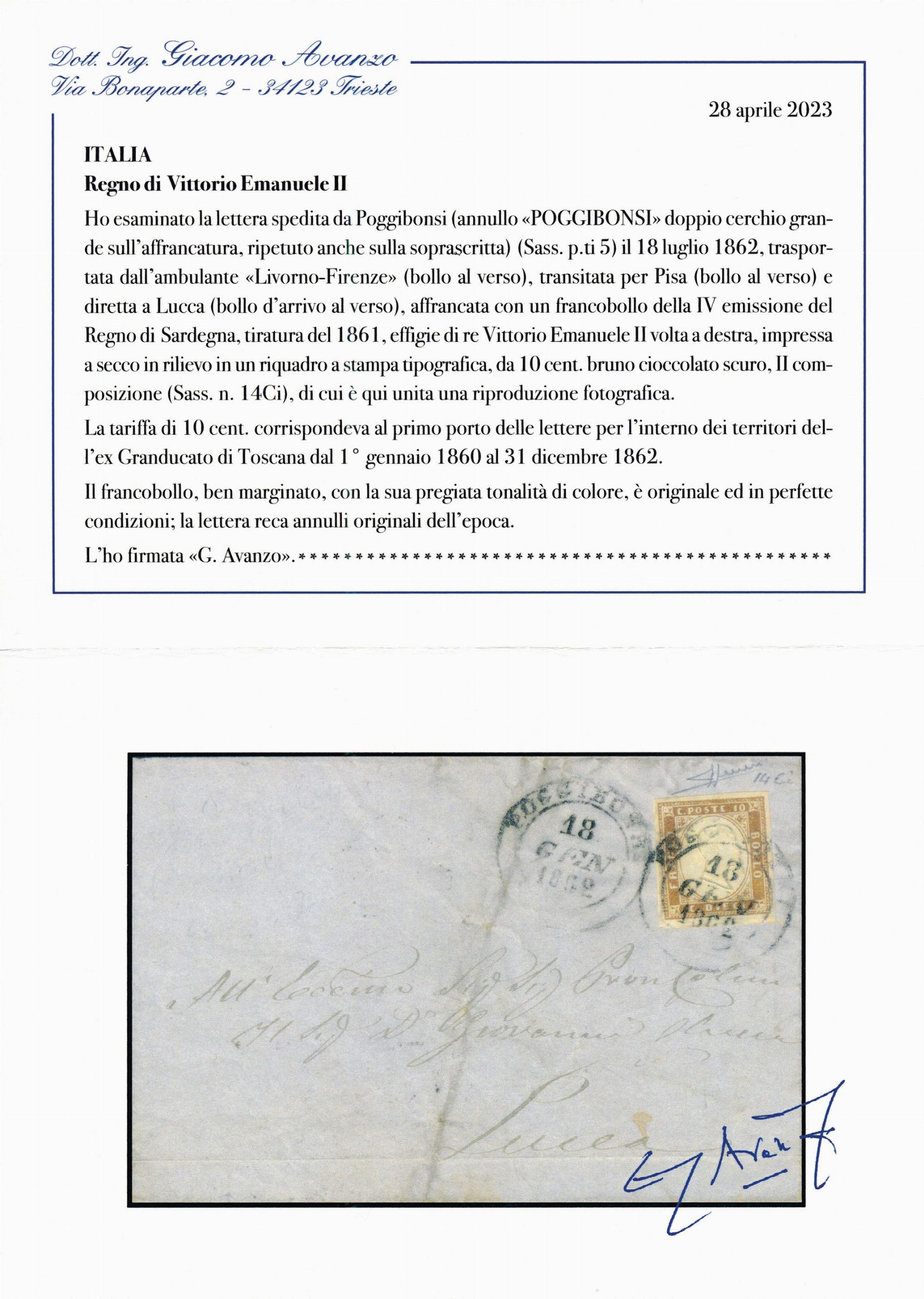 1862 - Regno d’Italia - Lettera da Poggibonsi per Lucca via Pisa trasportata dall’ambulante [..]