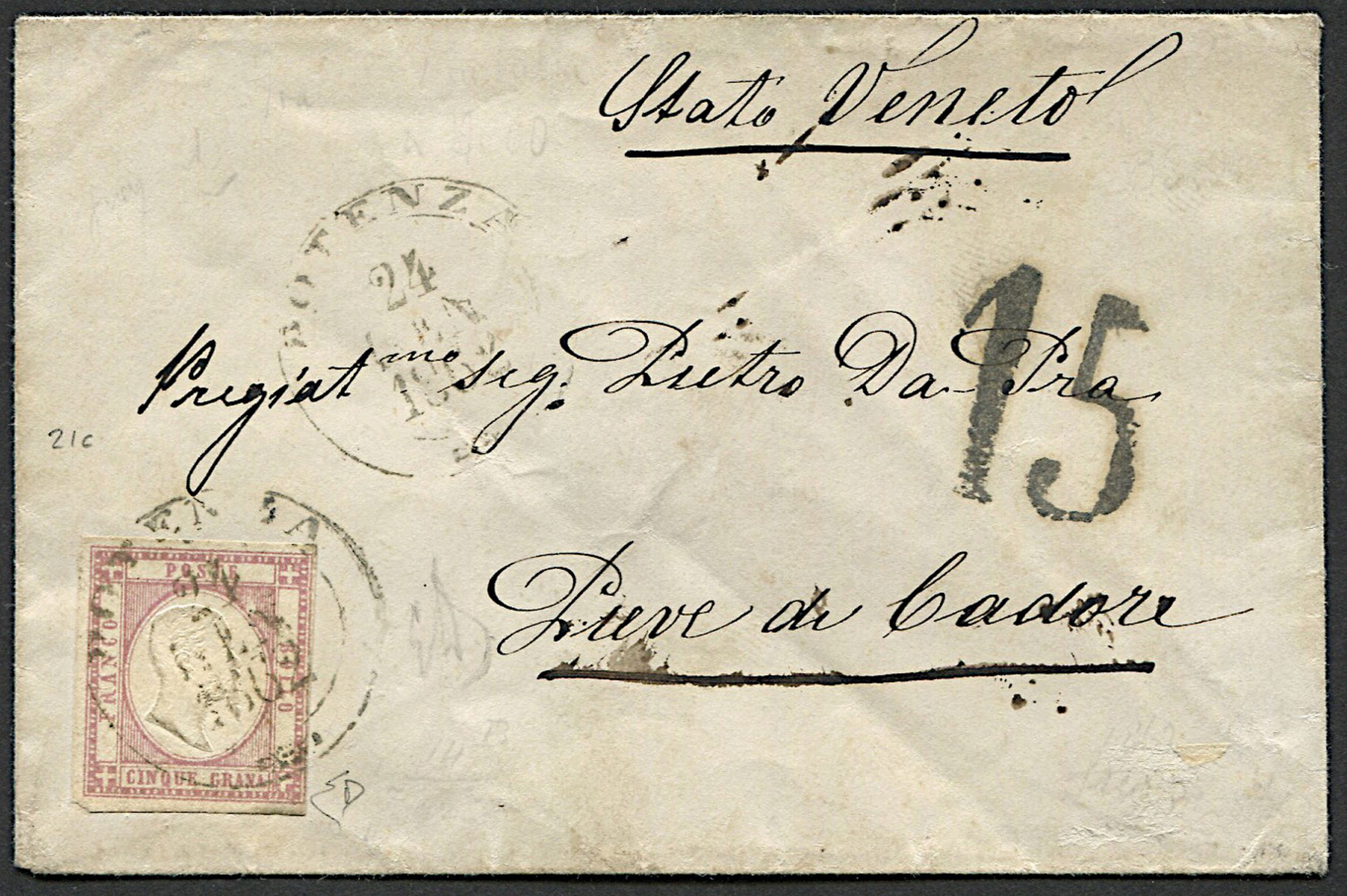 1862, Province Napoletane, lettera da Potenza per Pieve di Cadore del 24 gennaio [..]
