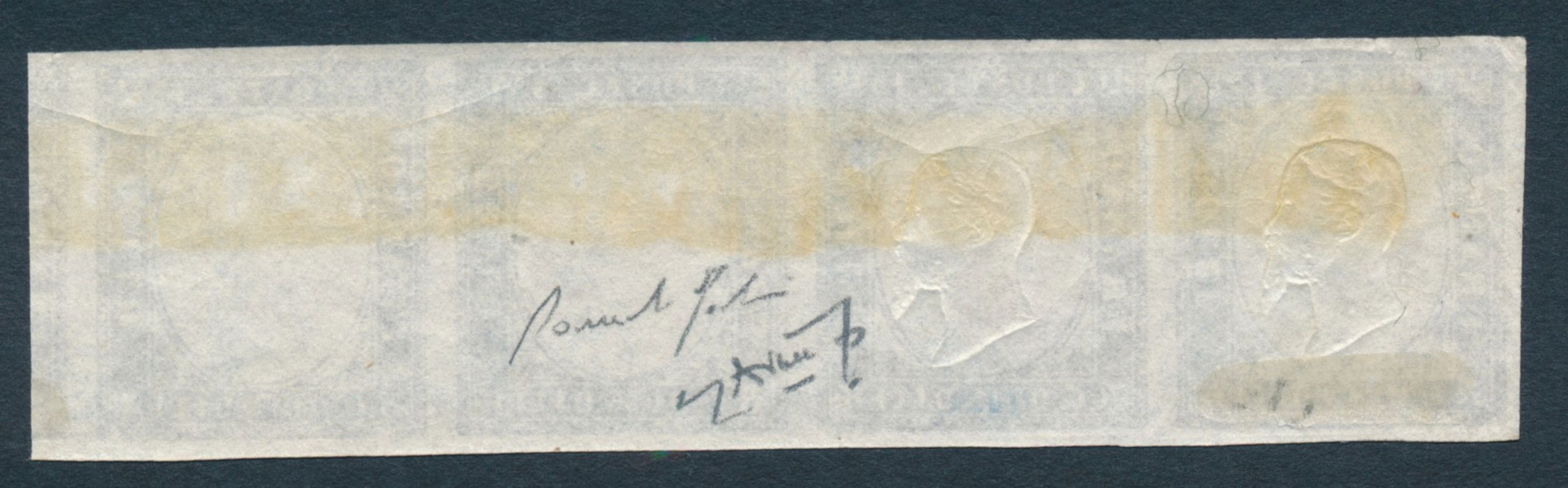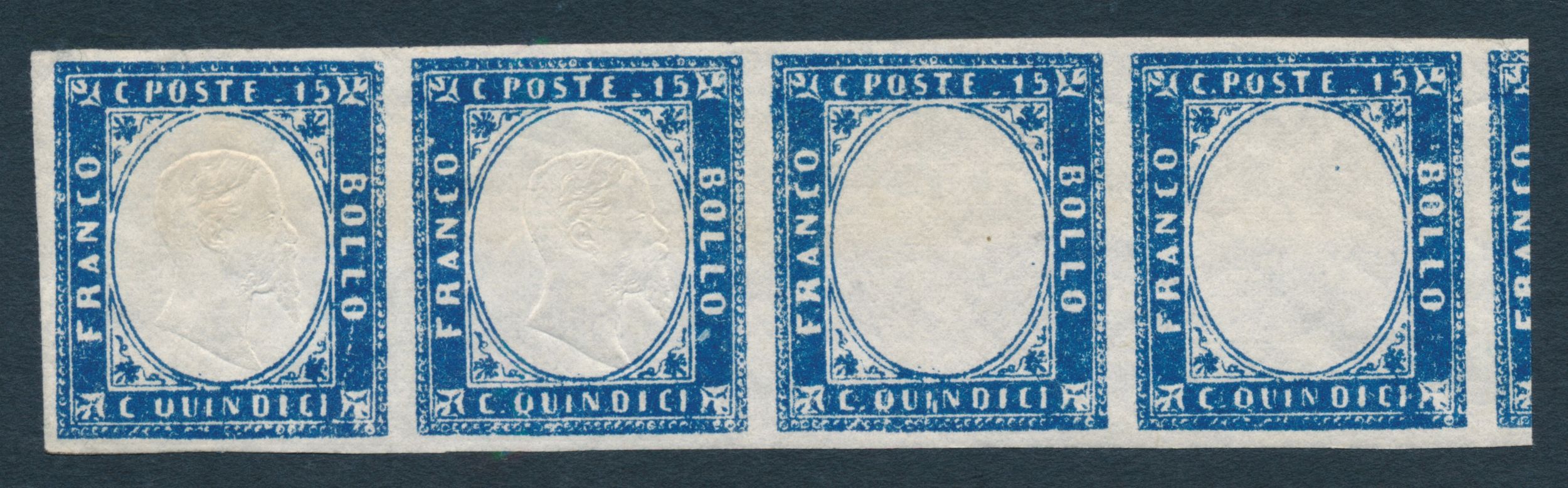 1863 - Regno d’Italia - 15 cent. azzurro - Striscia orizzontale, nuova, di tre formata [..]
