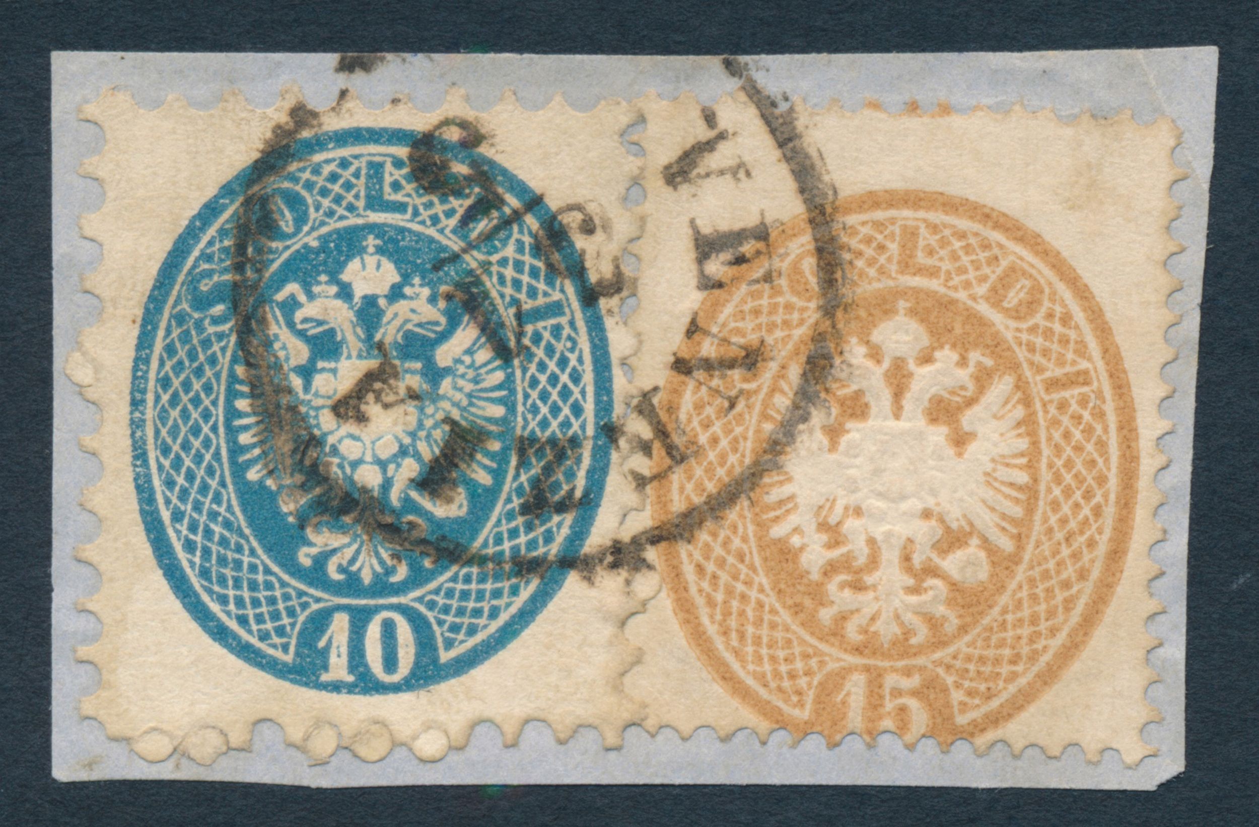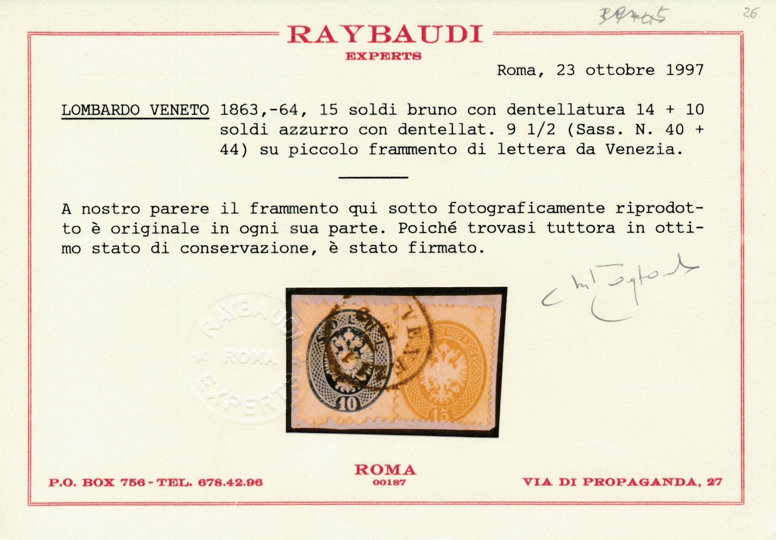 1863-64 Lombardo-Veneto 15 soldi bruno dent. 14 (Sass. 40) e 10 soldi azzurro [..]