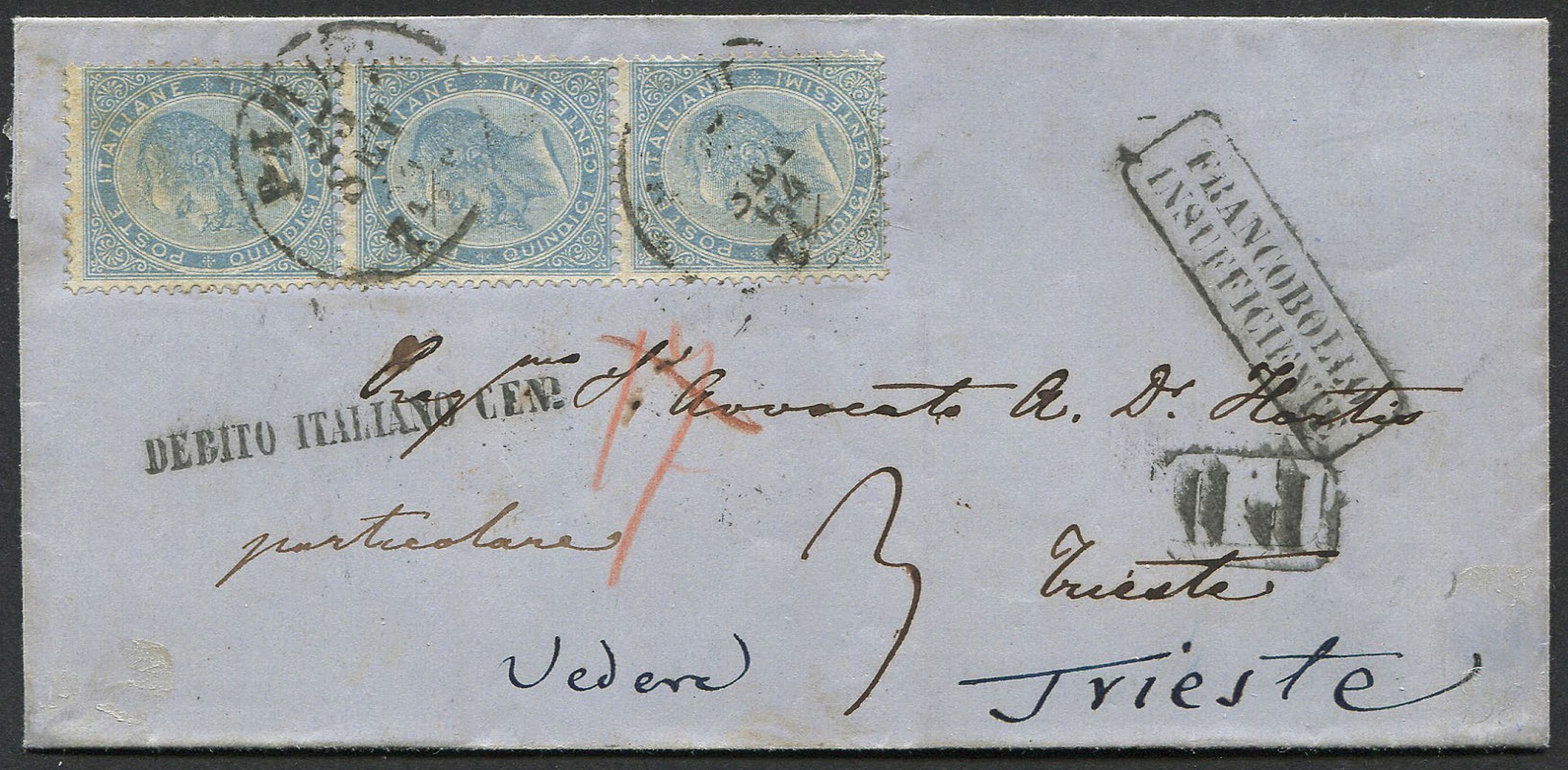 1864, Regno d’Italia, lettera da Parma per Trieste del 23 settembre Affrancata con [..]