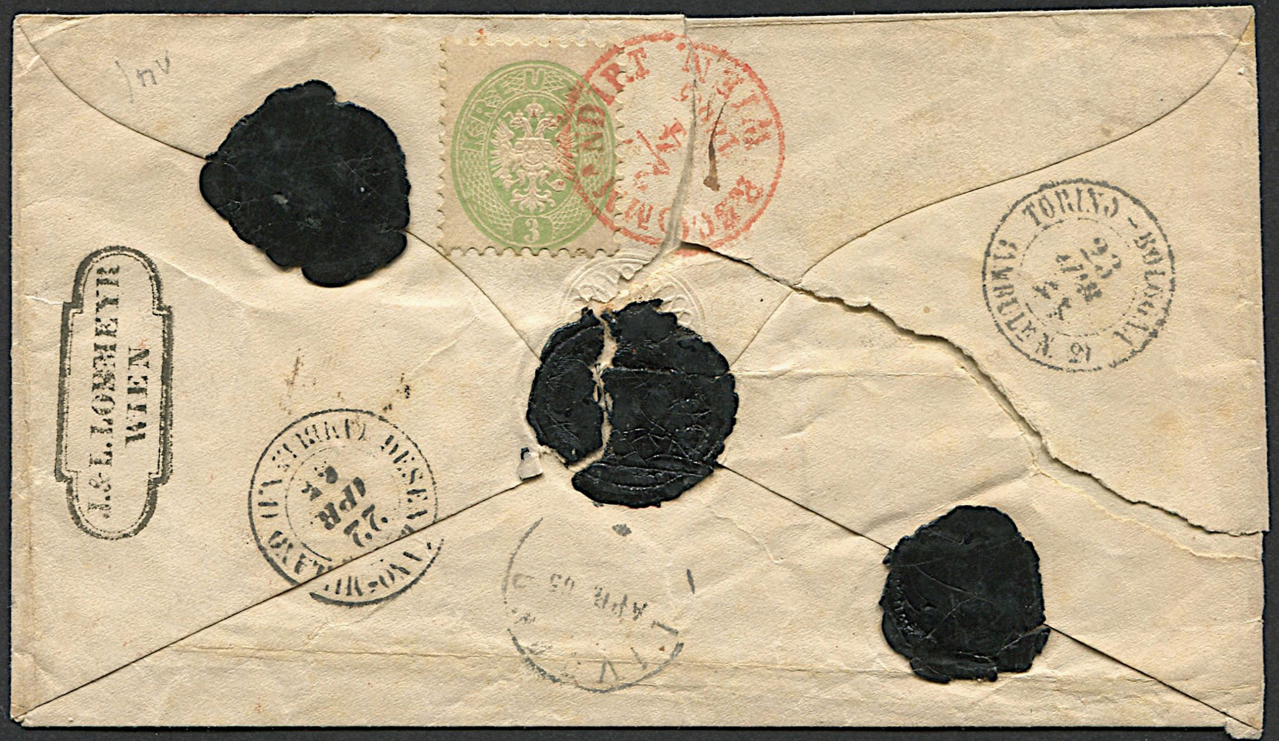 1865 - Austria, raccomandata da Vienna per Livorno del 20 aprile 1865