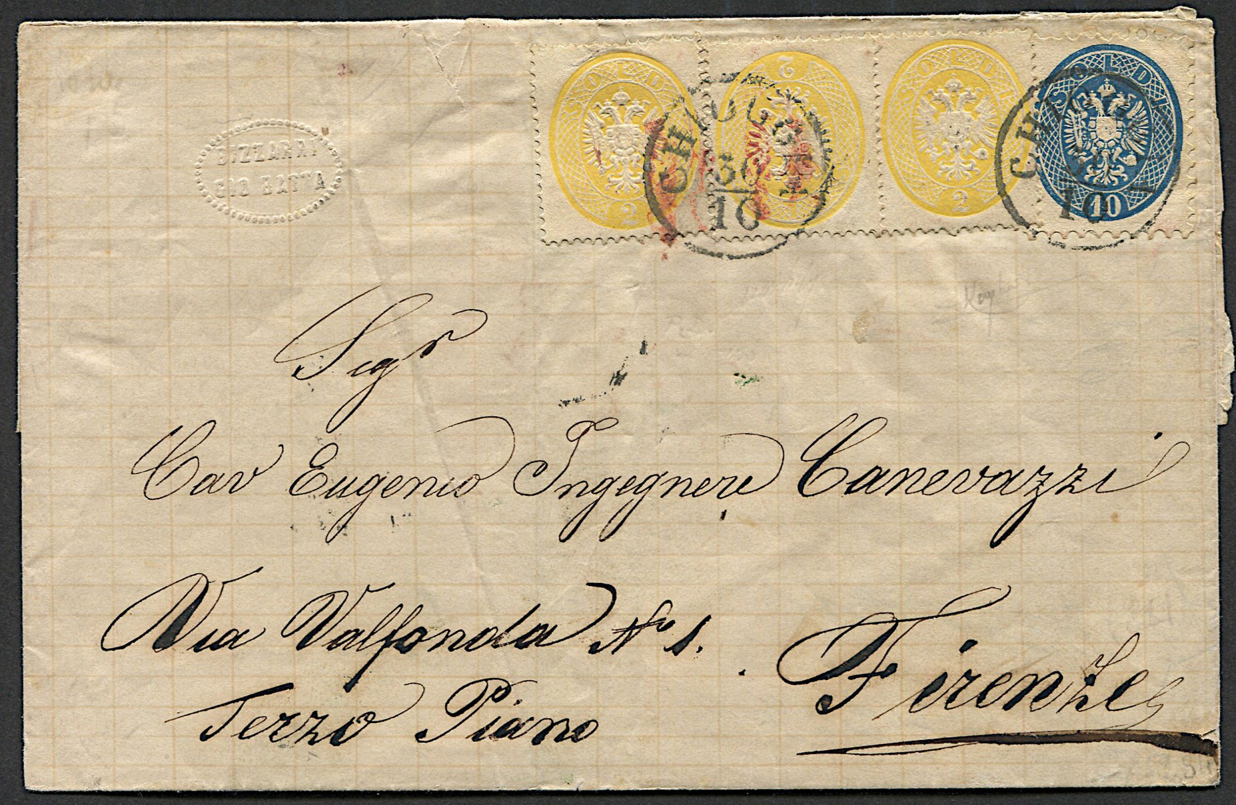 1865, Lombardo Veneto, lettera da Chioggia per Firenze del 30 ottobre affrancata [..]