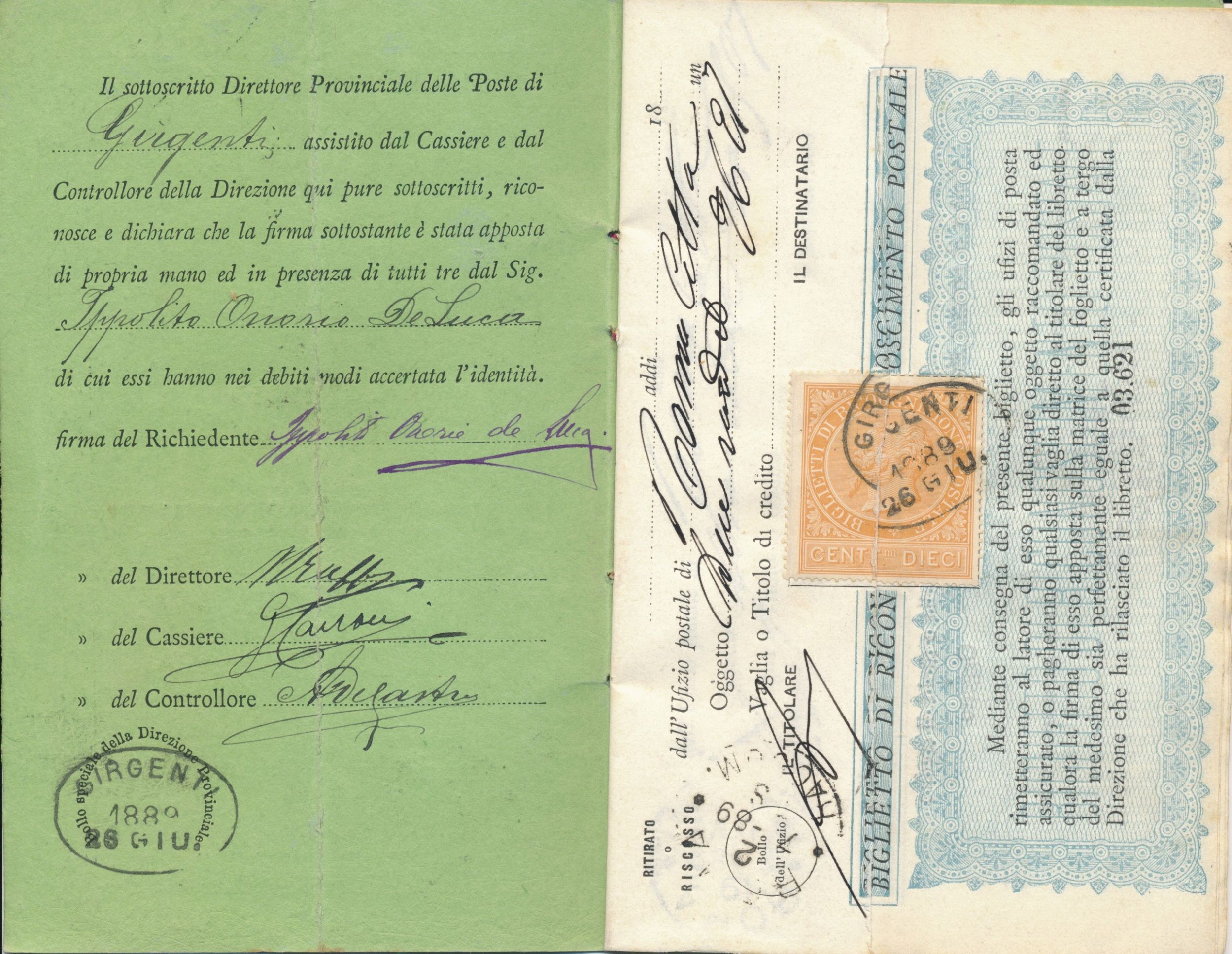 1874 - Regno d’Italia - Ricognizione postale - Libretto completo di 8 pagine con [..]
