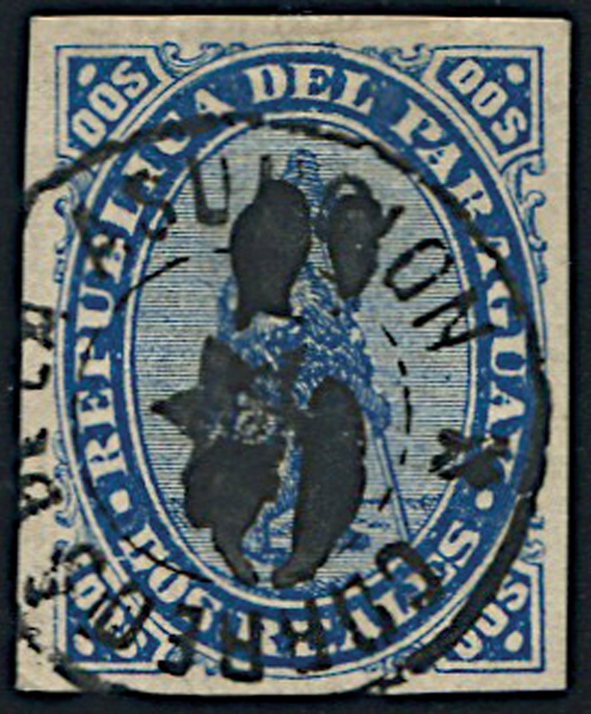 1878, Paraguay, overprinted “5” on 2 reales blue.