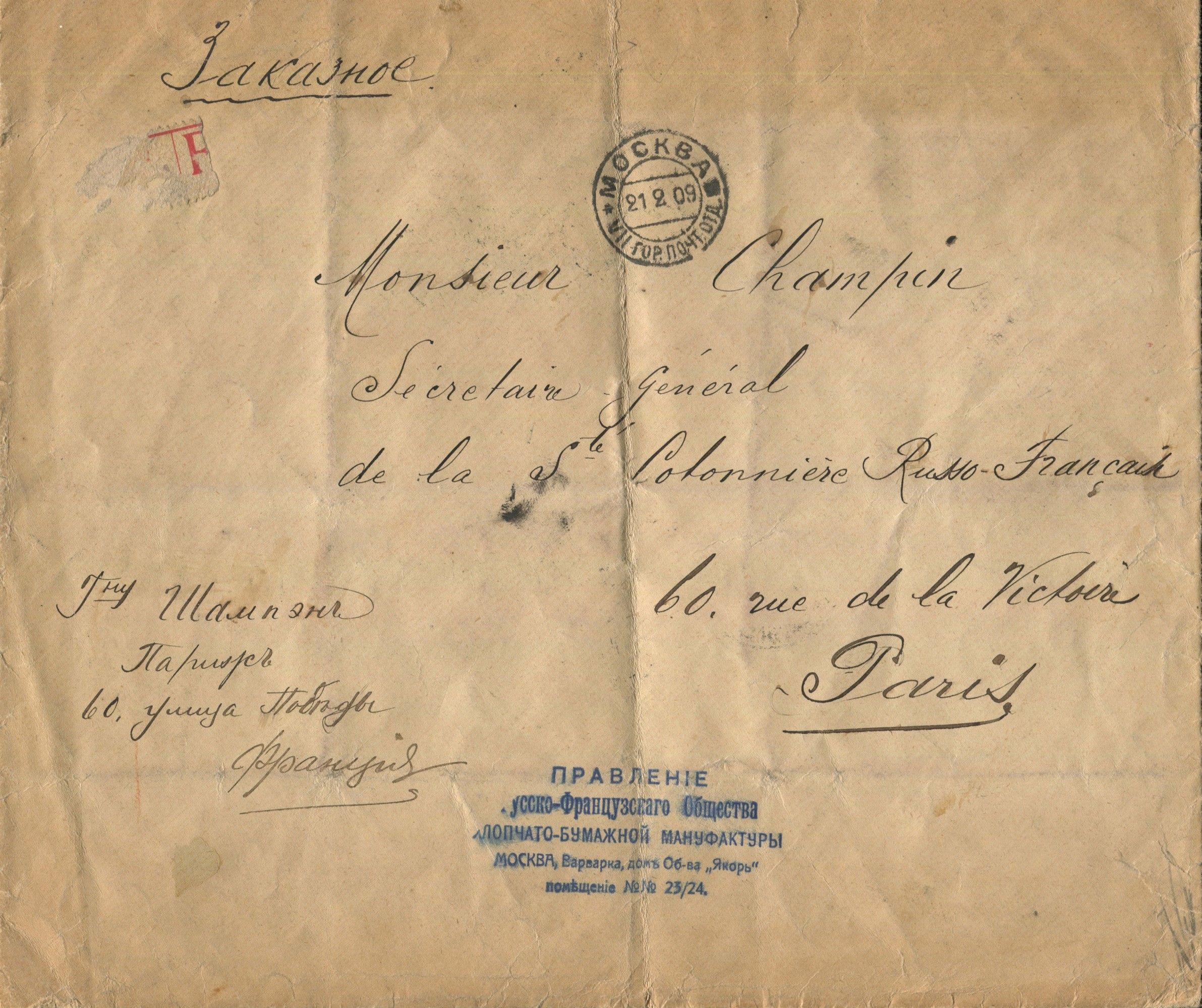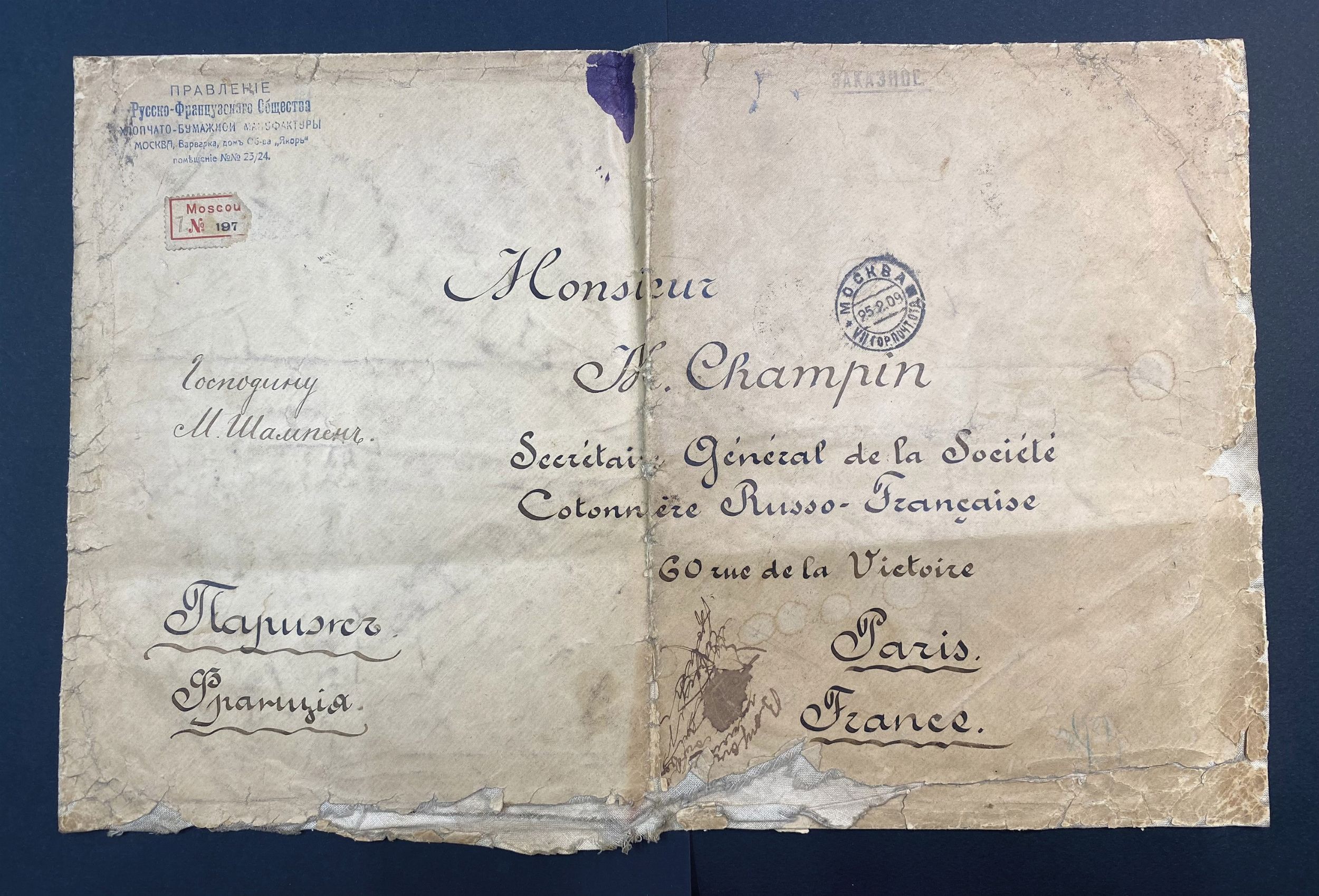 1909 - Russia - Due raccomandate su buste telate di grande formato da Mosca a Parigi [..]