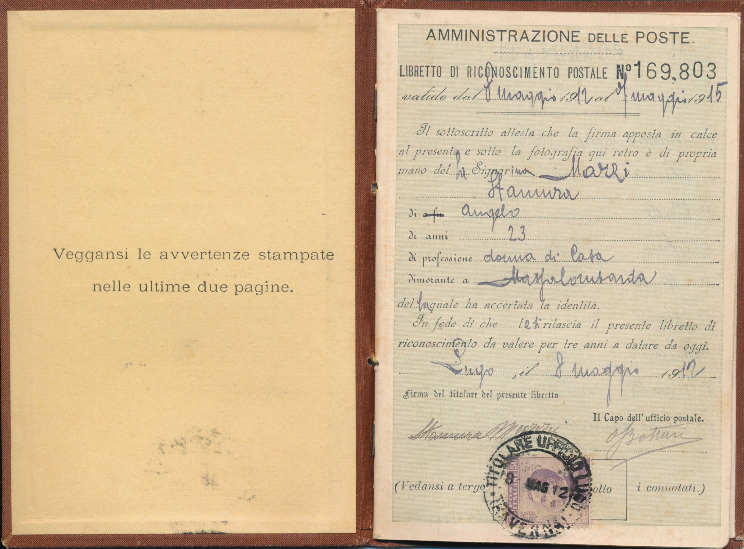 1912 - Regno d’Italia - Libretto di Riconoscimento postale per l’interno 8 maggio [..]