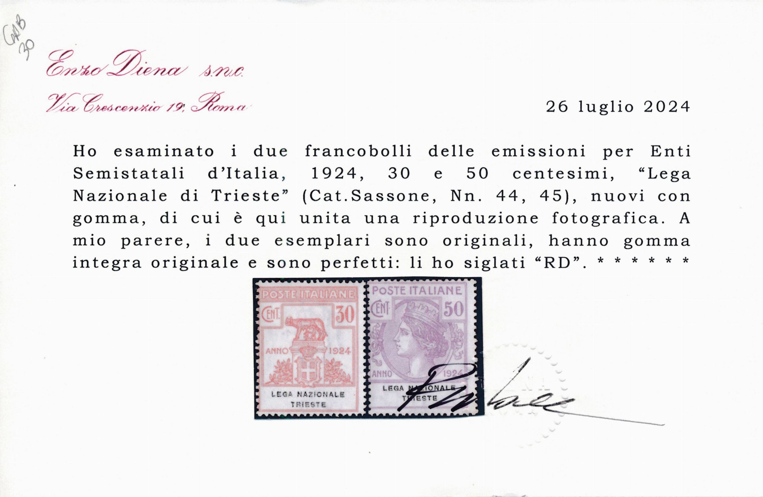 1924 – Regno d’Italia – Enti parastatali – “LEGA NAZIONALE TRIESTE” serie cpl. (Sass. [..]