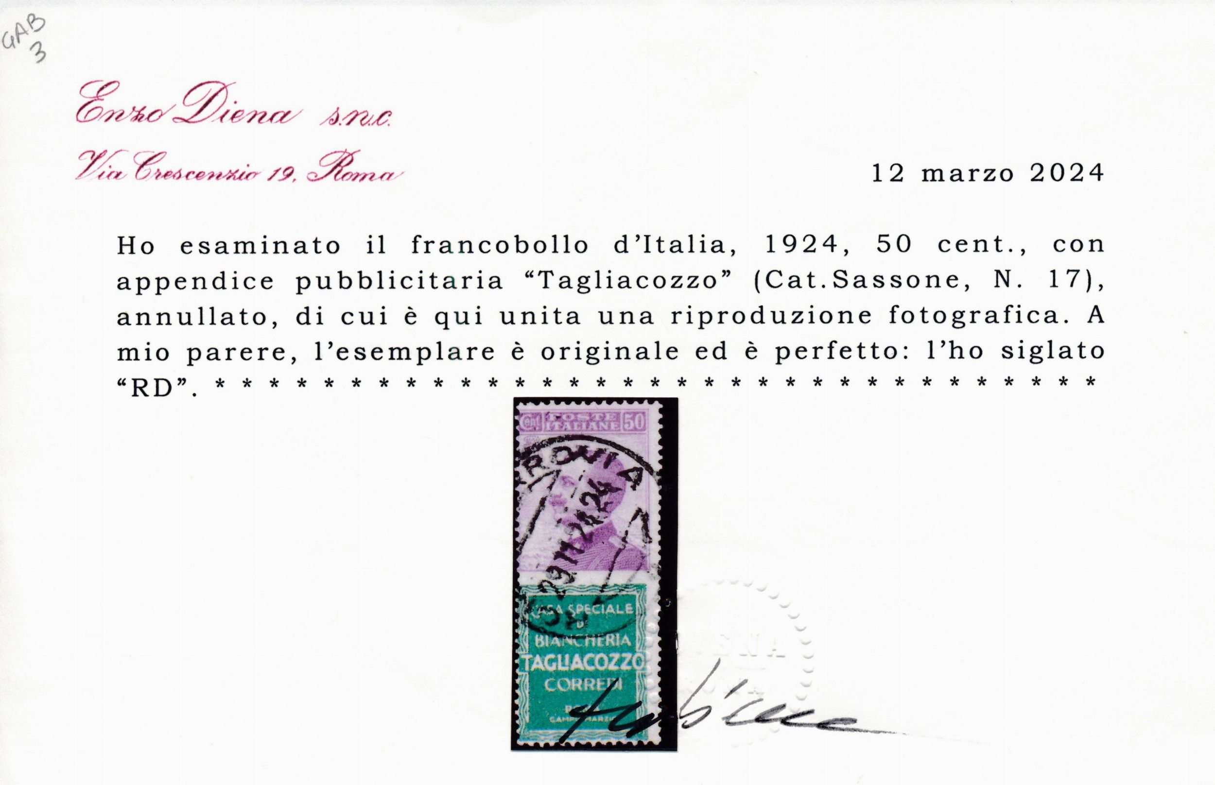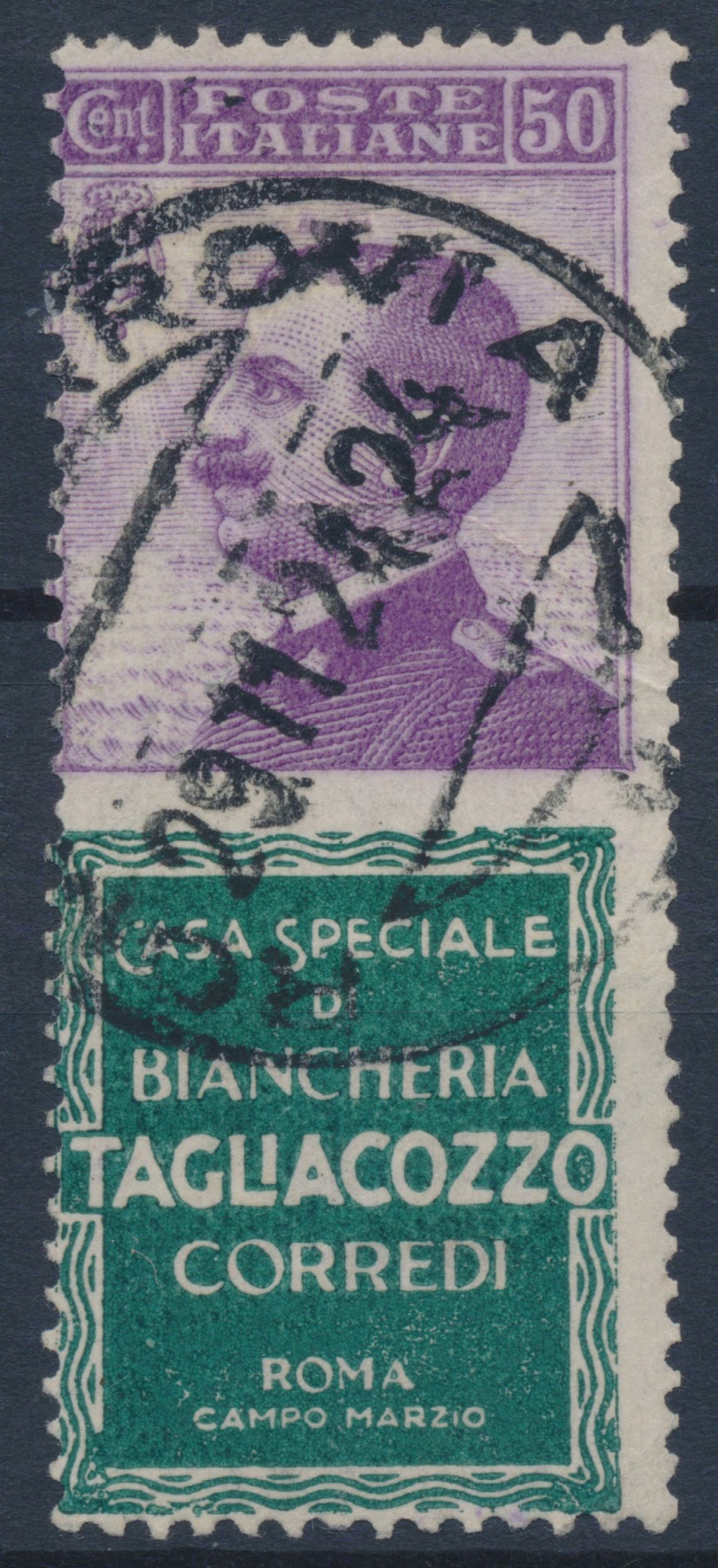 1924 – Regno d’Italia – Francobolli pubblicitari – 50 cent. violetto e verde “TAGLIACOZZO” [..]