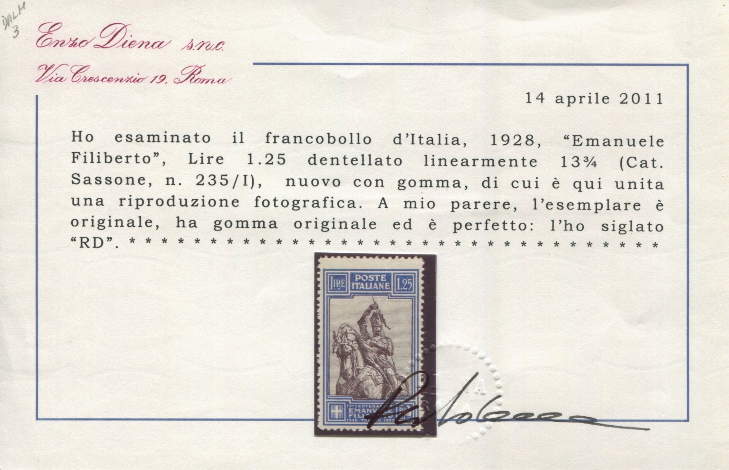 1928 - Regno d’Italia - 4° Centenario della nascita di Emanuele Filiberto (235/I [..]