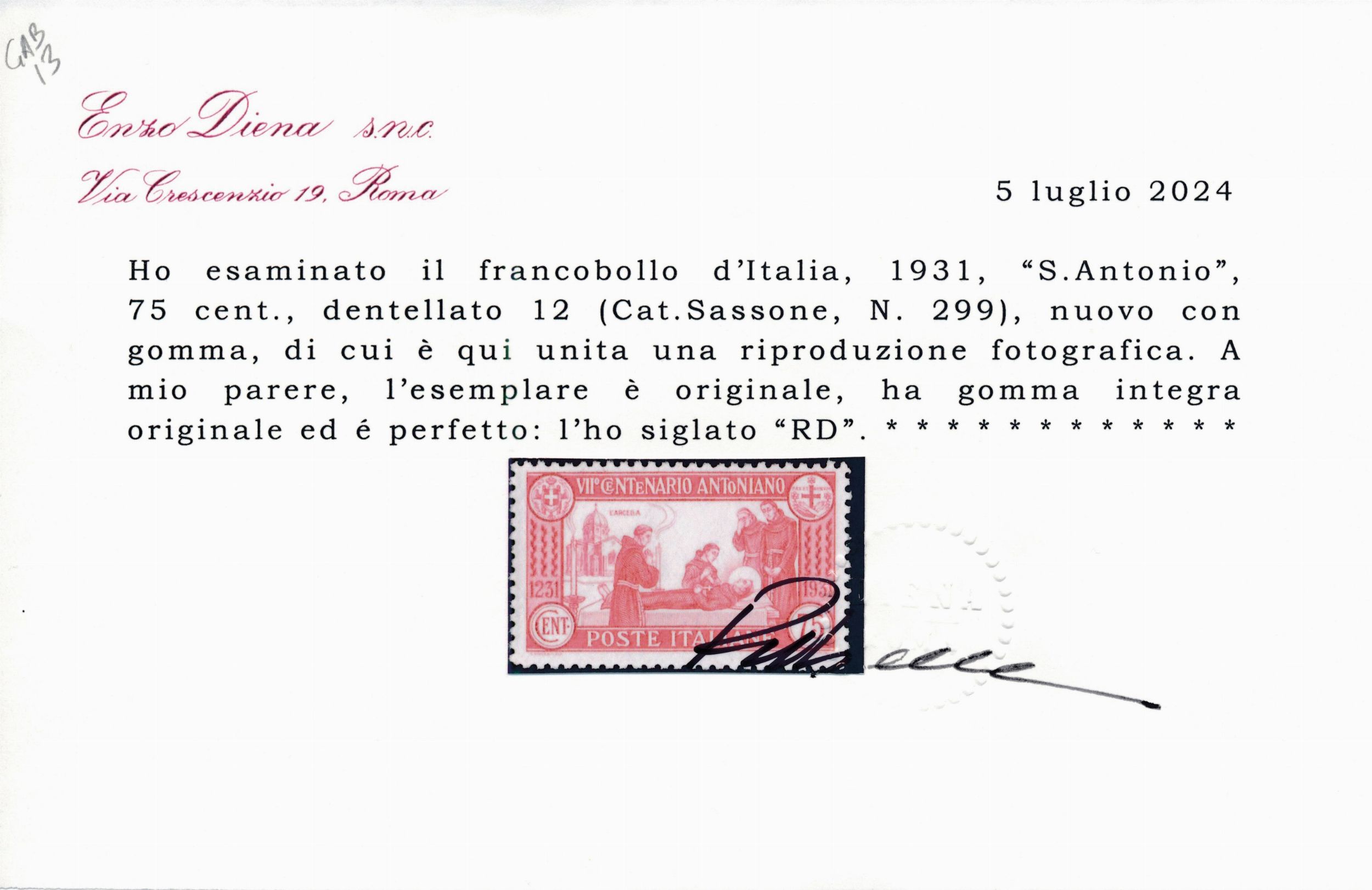 1931 – Regno d’Italia – 7° centenario della morte di S. Antonio – 75 cent. carminio, [..]