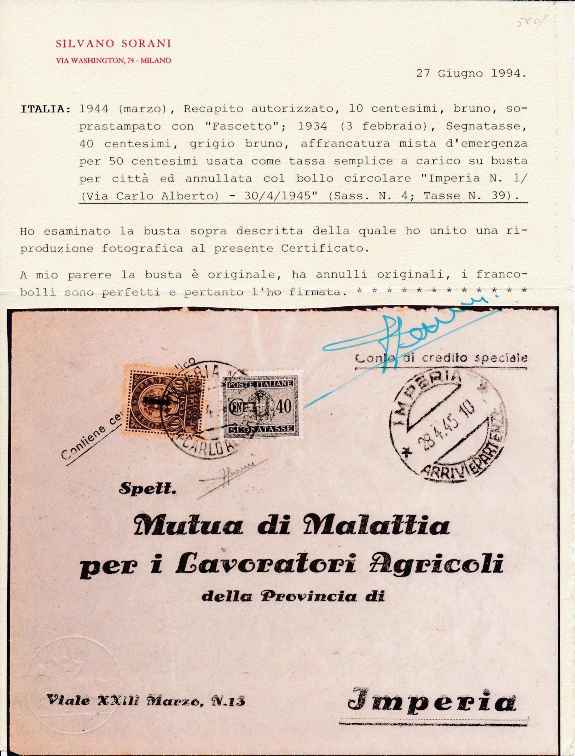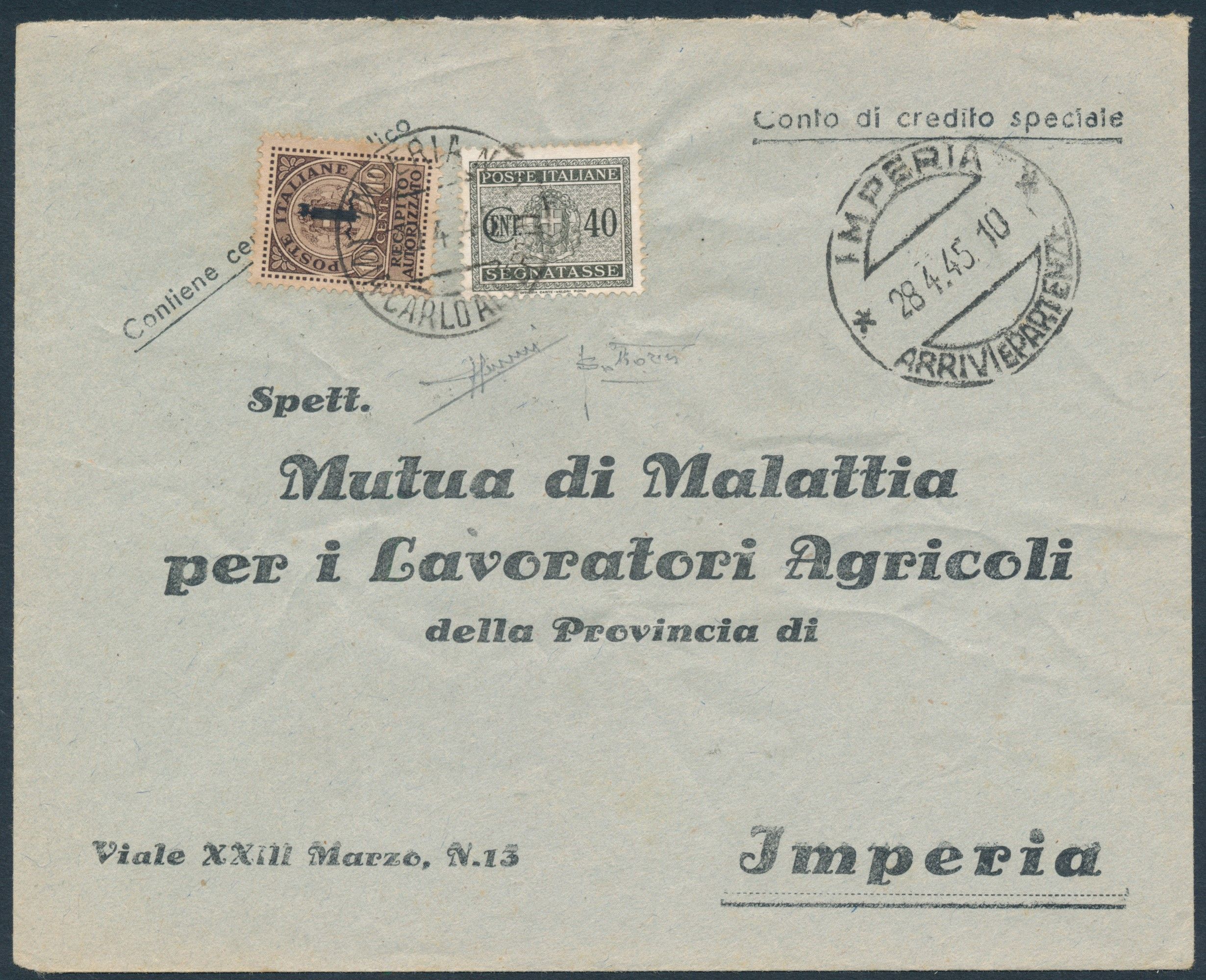 1944 – Repubblica Sociale Italiana – Recapito autorizzato – Busta da Imperia a [..]