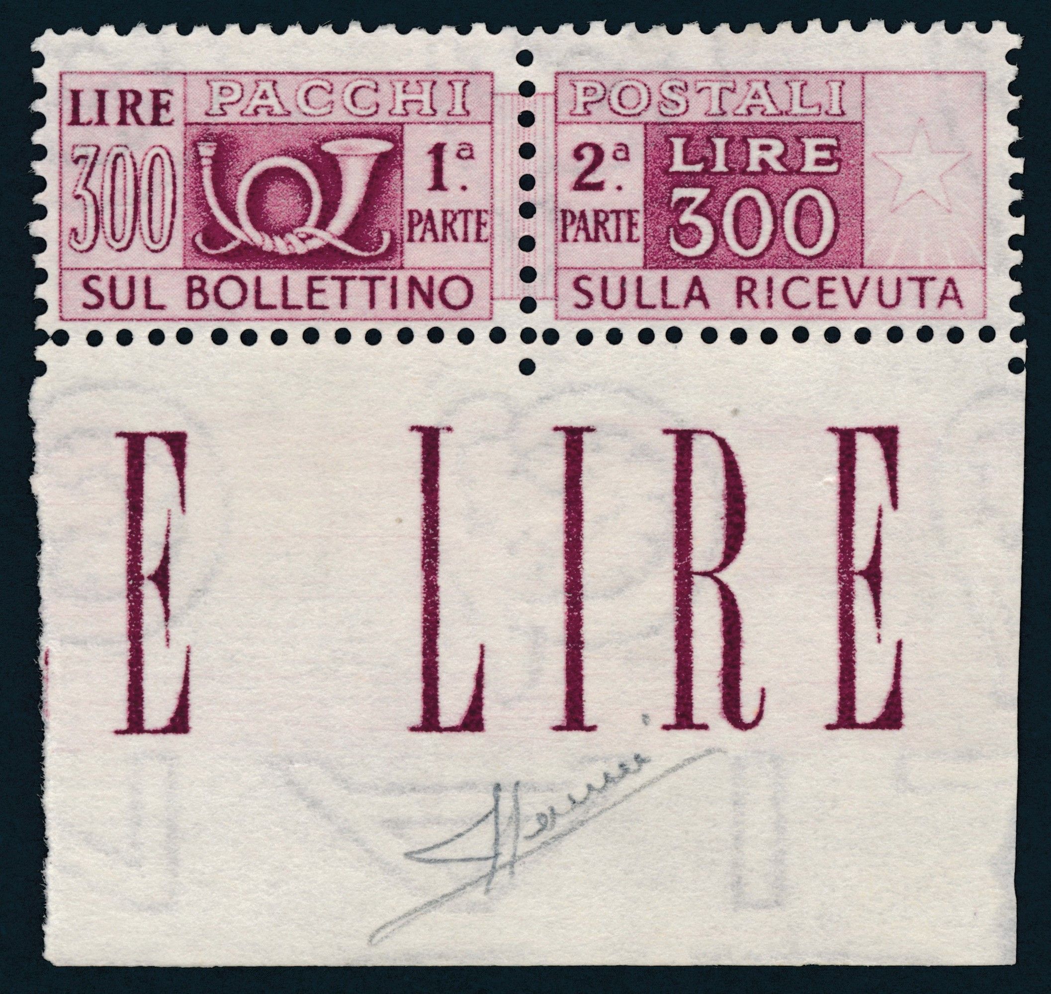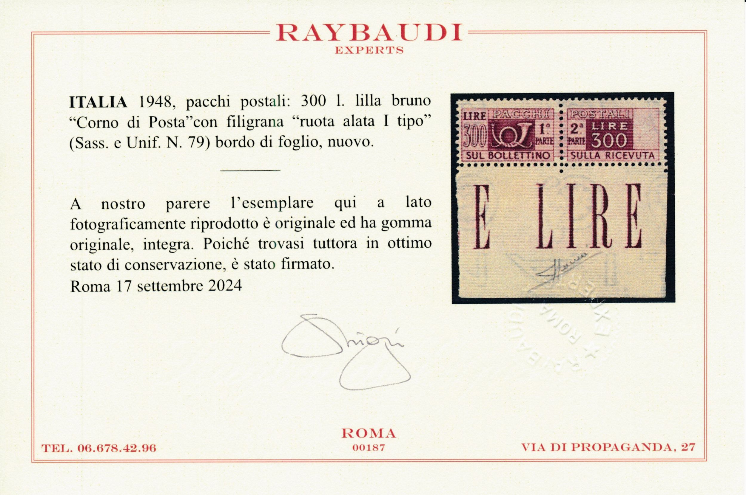 1948 Repubblica italiana Pacchi postali 300 lire lilla bruno, filigrana ruota [..]
