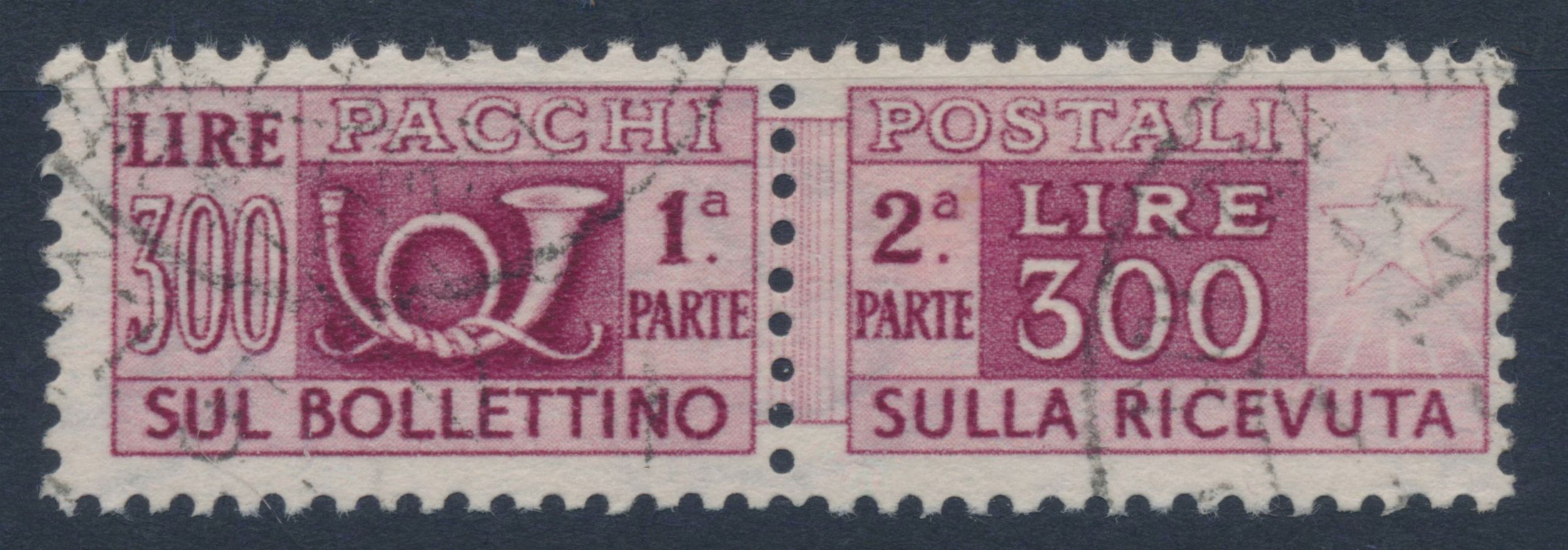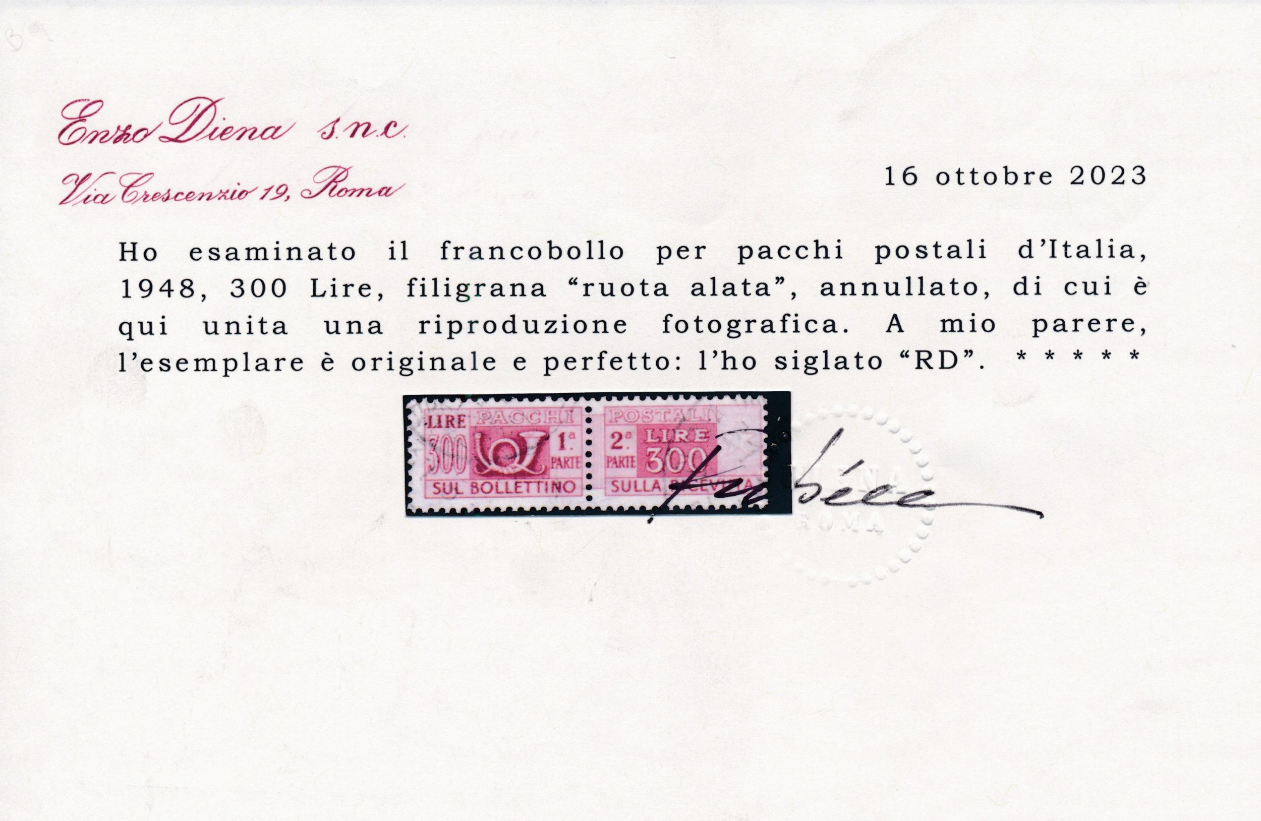 1948 Repubblica italiana Pacchi postali 300 lire lilla bruno, filigrana ruota, [..]
