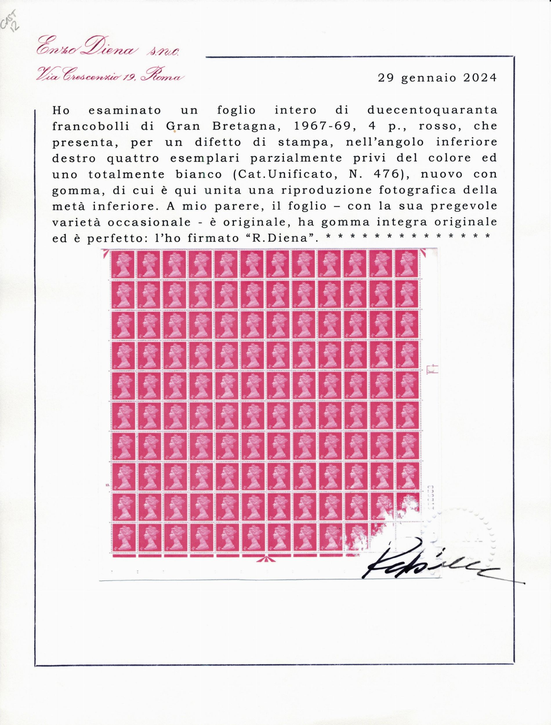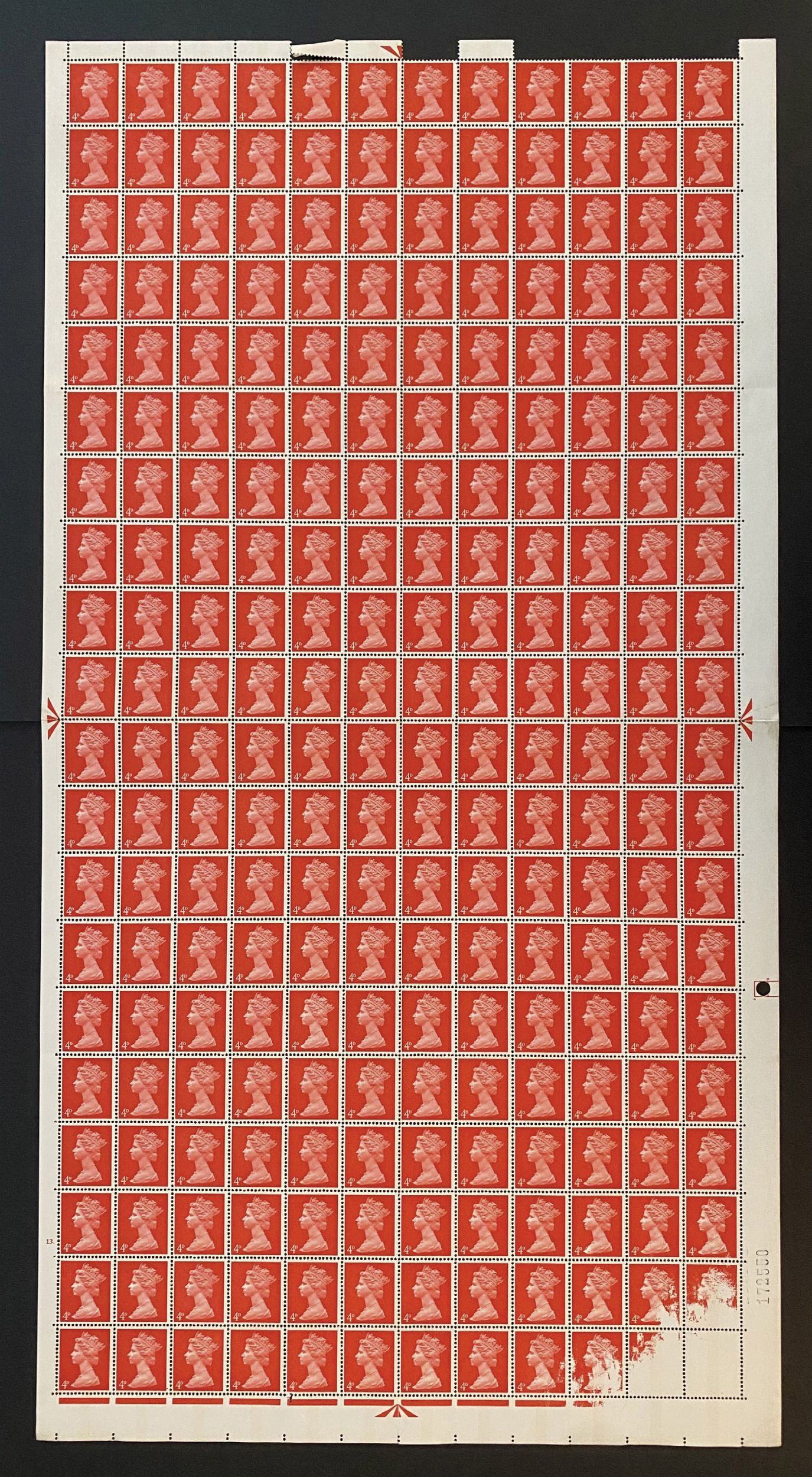 1967-69 Gran Bretagna - Foglio intero di 240 francobolli, 1967-1969, 4 penny rosso [..]