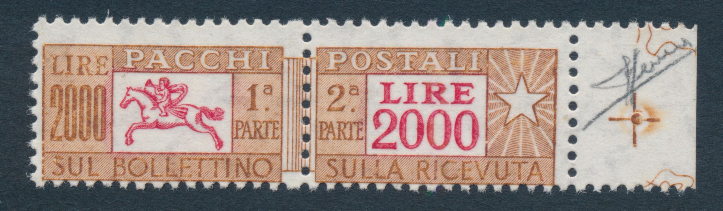 1977 - Repubblica Italiana - Pacchi postali - 2.000 lire bruno e rosso bdf, filigrana [..]