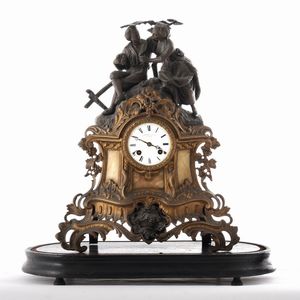 Pendola da tavolo in metallo dorato e brunito. XX secolo