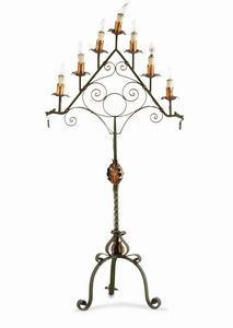 Candeliere in legno dipinto montato a lampada, XX secolo