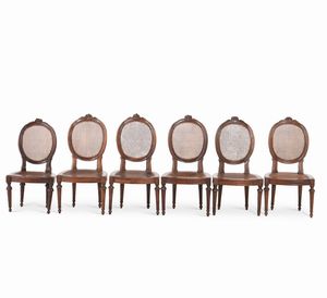 Gruppo di sei sedie Luigi XIV intagliate, XVIII secolo