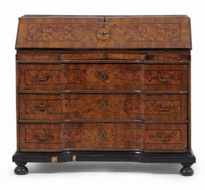 Bureau lastronato in noce e radica di noce, XVIII secolo