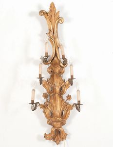 Appliques a sei luci in legno intagliato e dorato. XVIII secolo