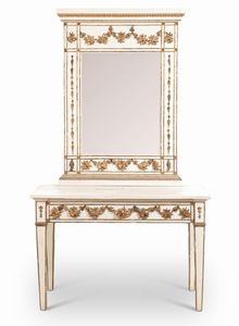 Console in legno intagliato, laccato e dorato con specchiera. XVIII-XIX secolo