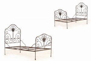Coppia di letti singoli in ferro battuto dipinto. XX secolo