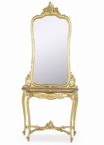 Consolle in legno intagliato e dorato con specchiera. XX secolo
