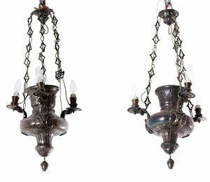 Coppia di lampioni in ghisa e ferro. Fine XIX-XX secolo