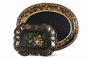 Due vassoi uno in tôle peinte, e uno in papier mâché. Francia XIX secolo