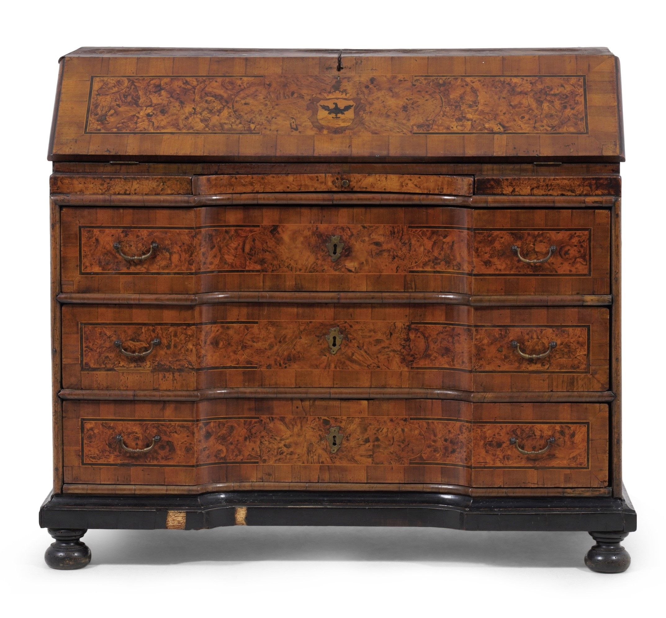 Bureau lastronato in noce e radica di noce, XVIII secolo