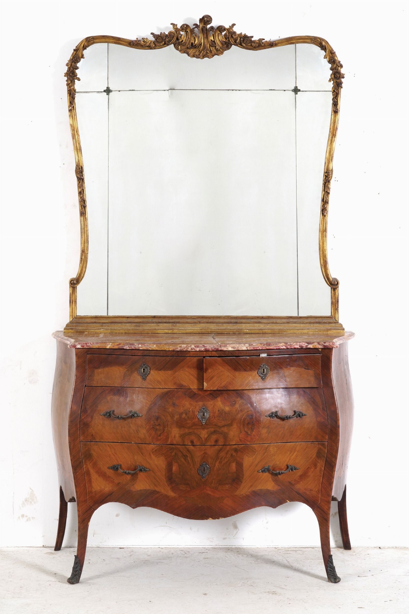 Coppia di cassettoni in stile barocchetto con specchiere dorate in stile