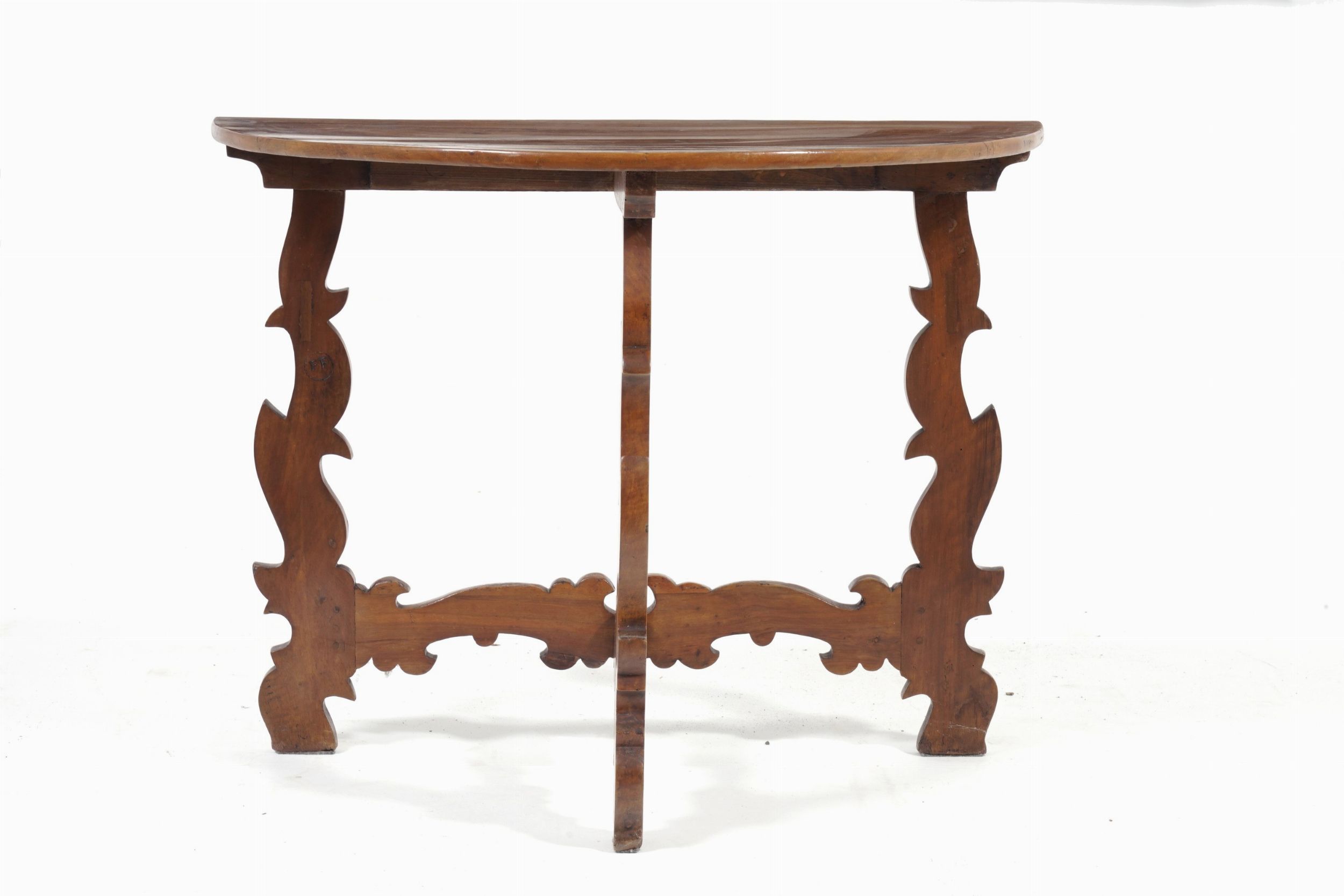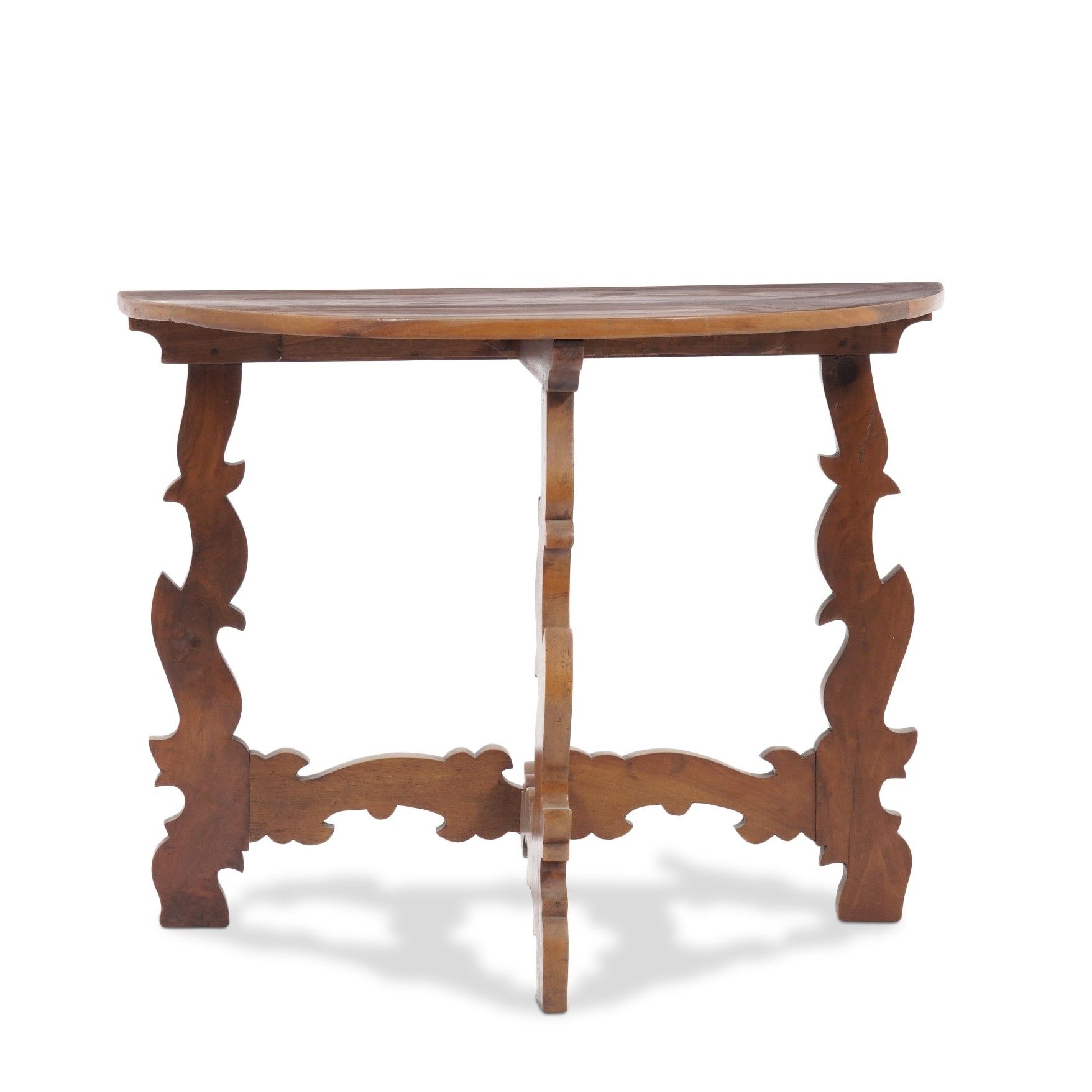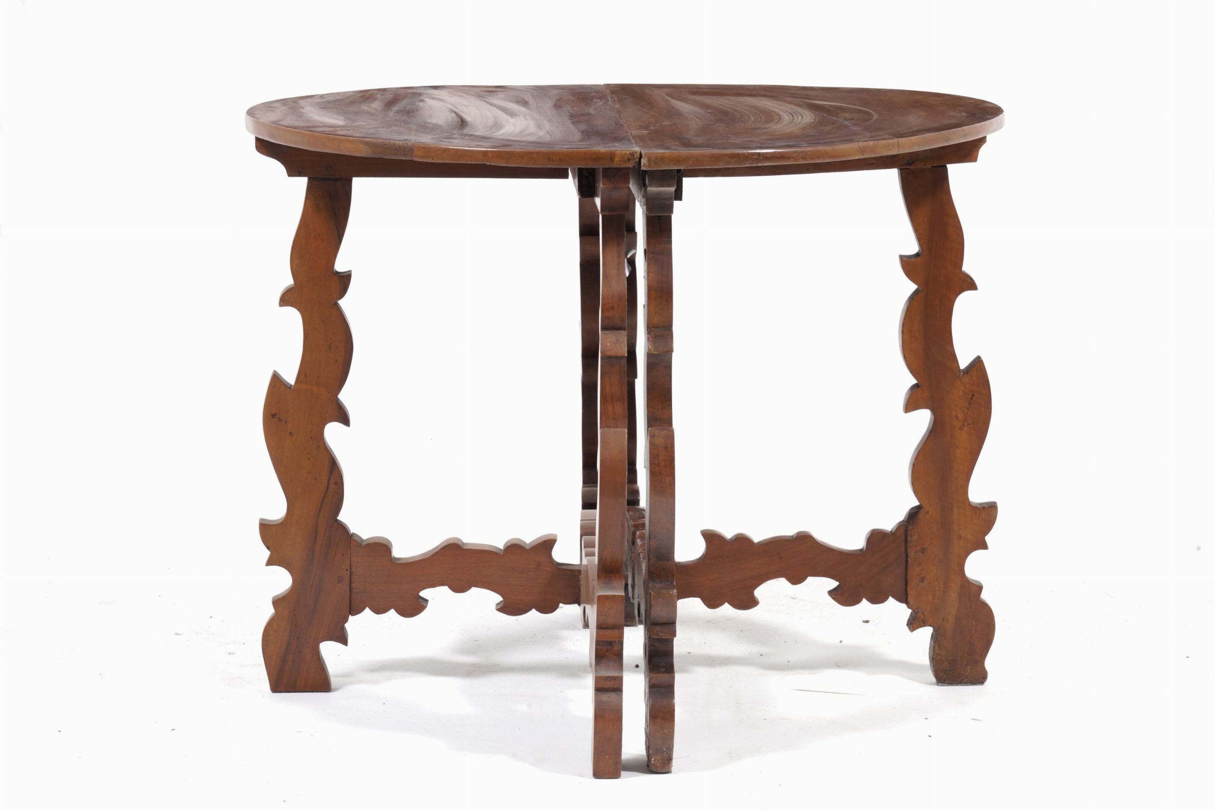 Coppia di tavoli demi lune con gambe a lira. XIX secolo