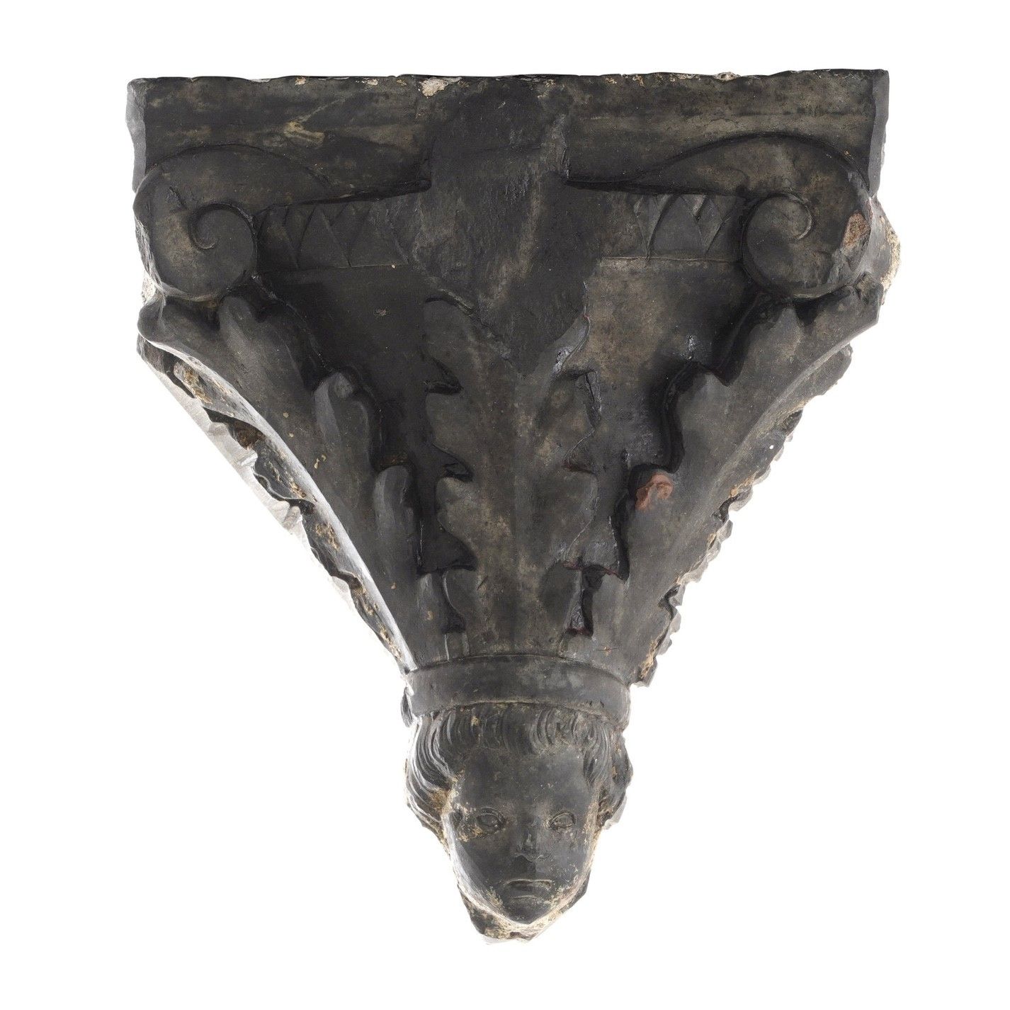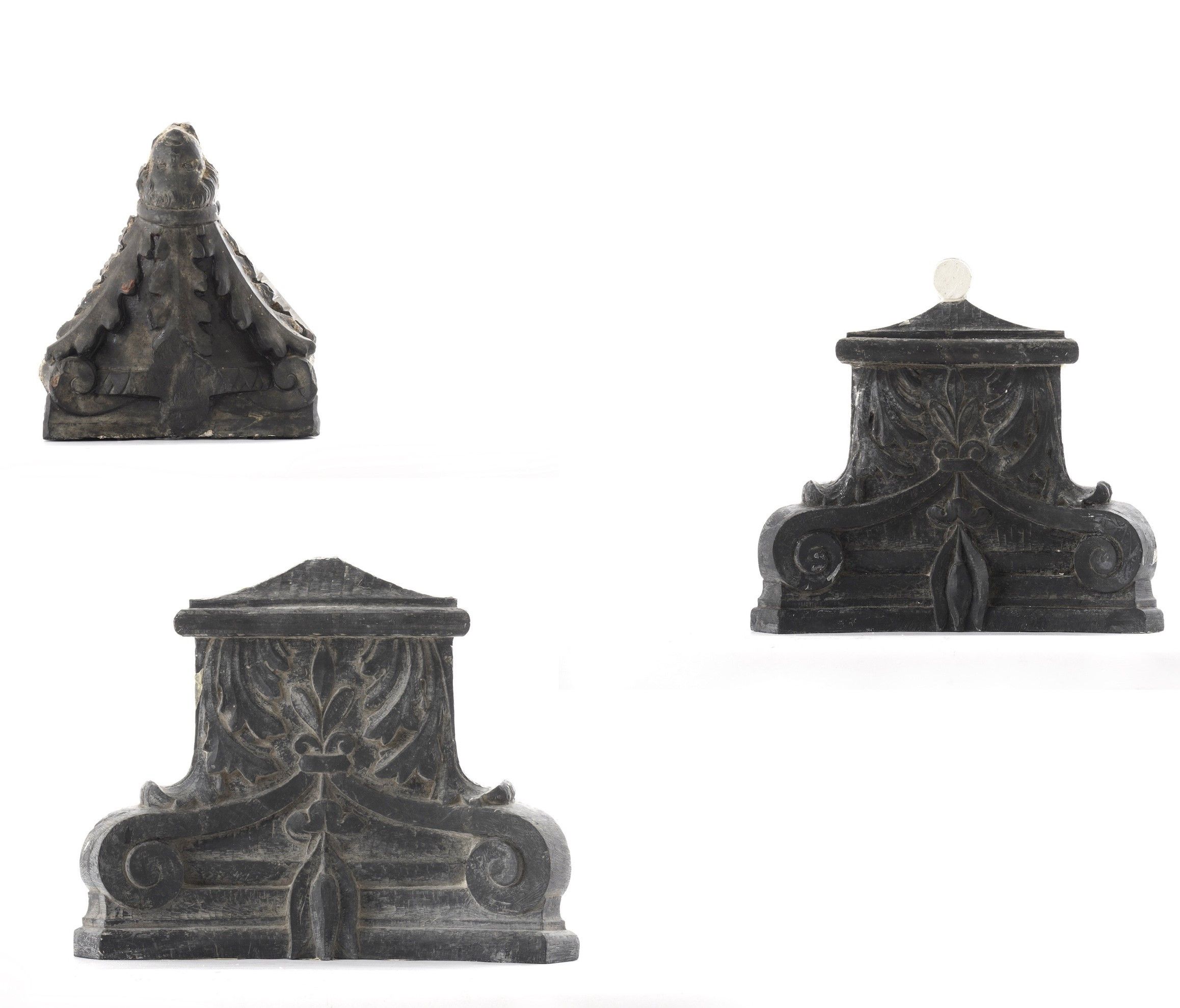 Due semicapitelli e un fregio in ardesia