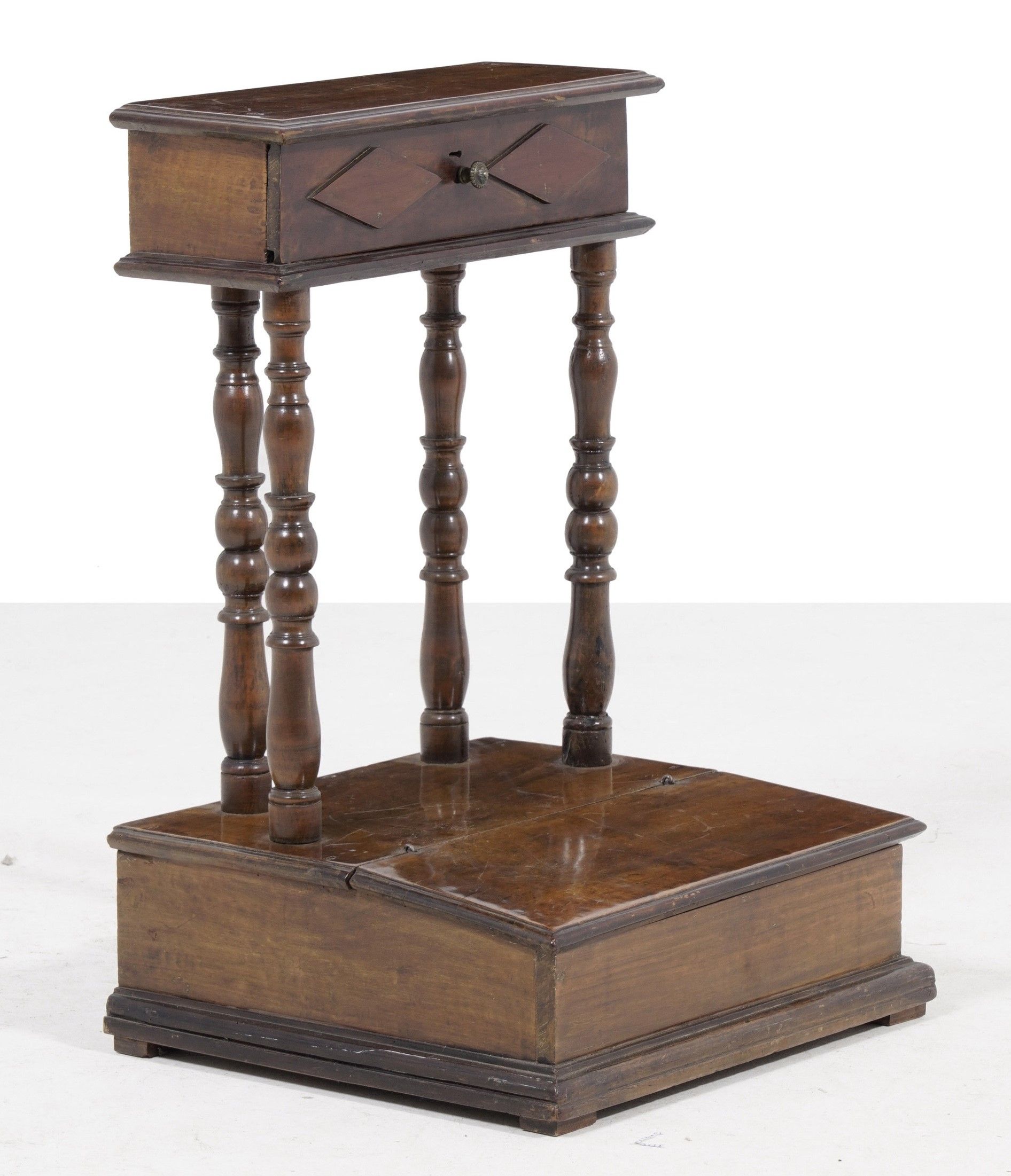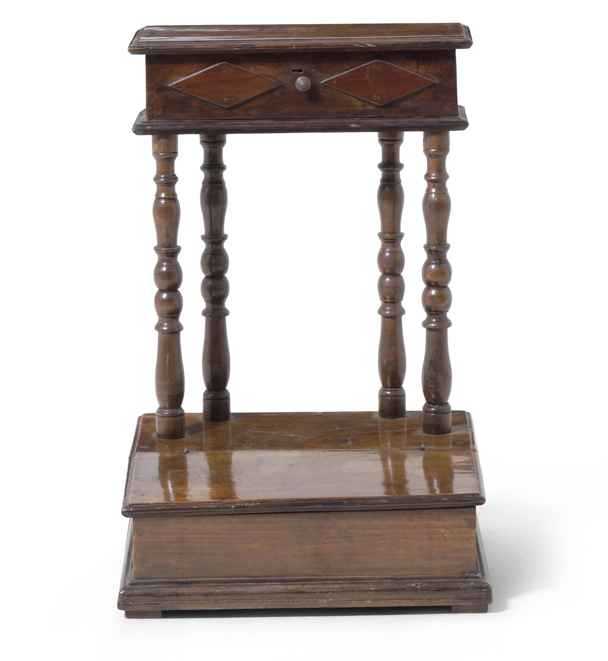 Inginocchiatoio in noce con sostegni torniti. XIX secolo