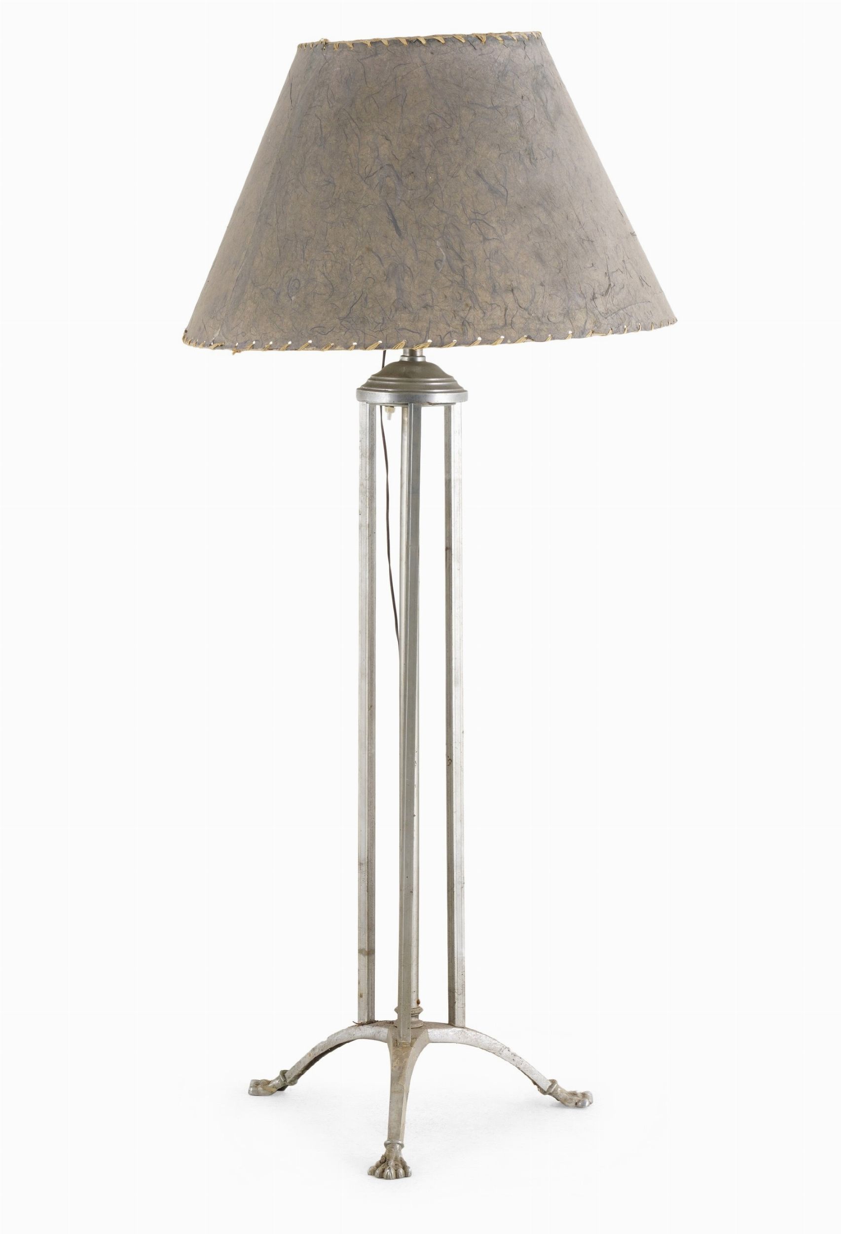Lampada da terra in metallo poggiante su piedi ferini, XX secolo