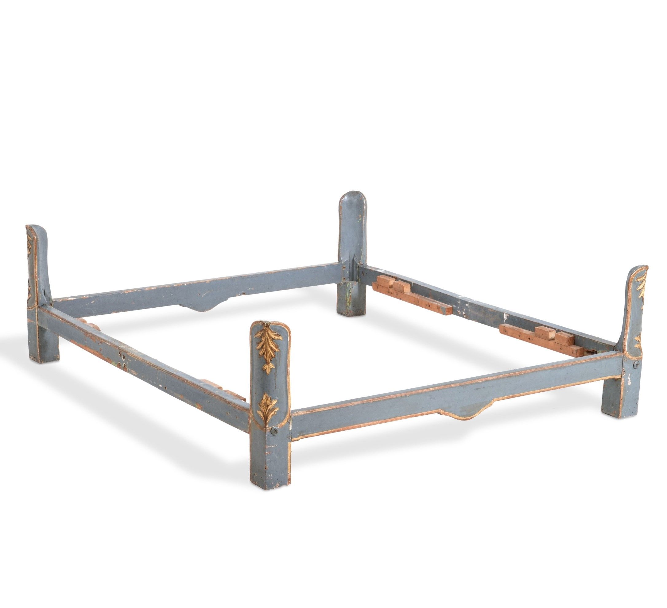 Letto a cartoccio in legno intagliato e dipinto. XVIII-XIX Secolo