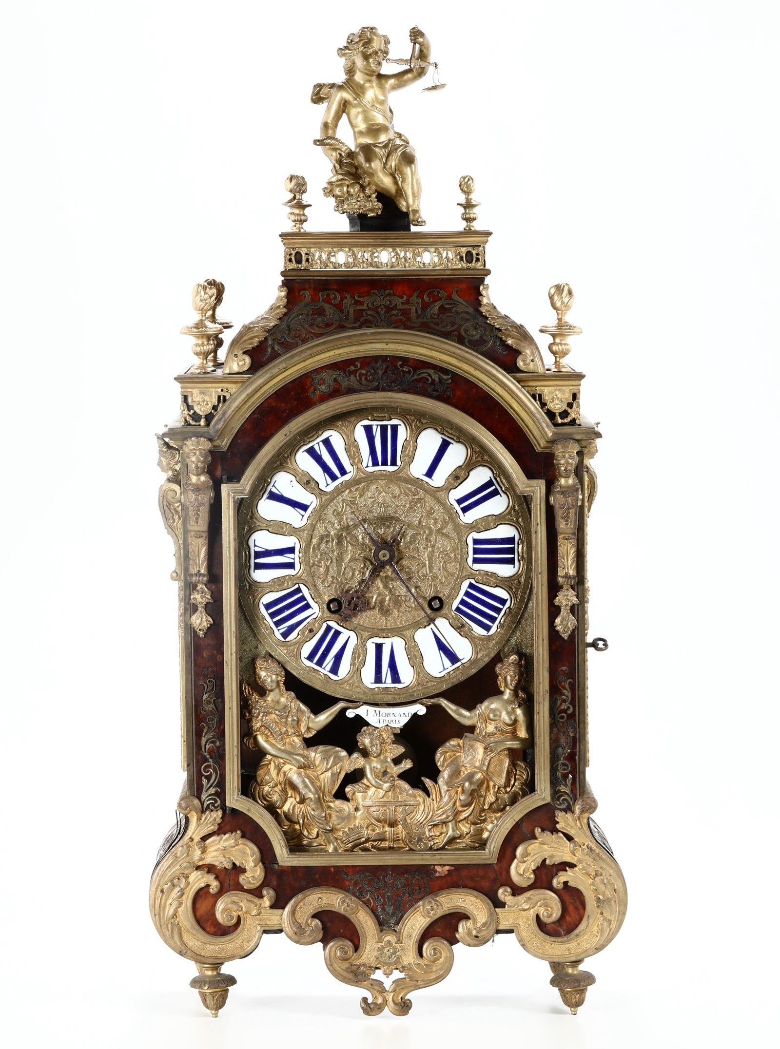Pendola da tavolo con decori di gusto boulle, J.Mornand a Paris, XIX secolo